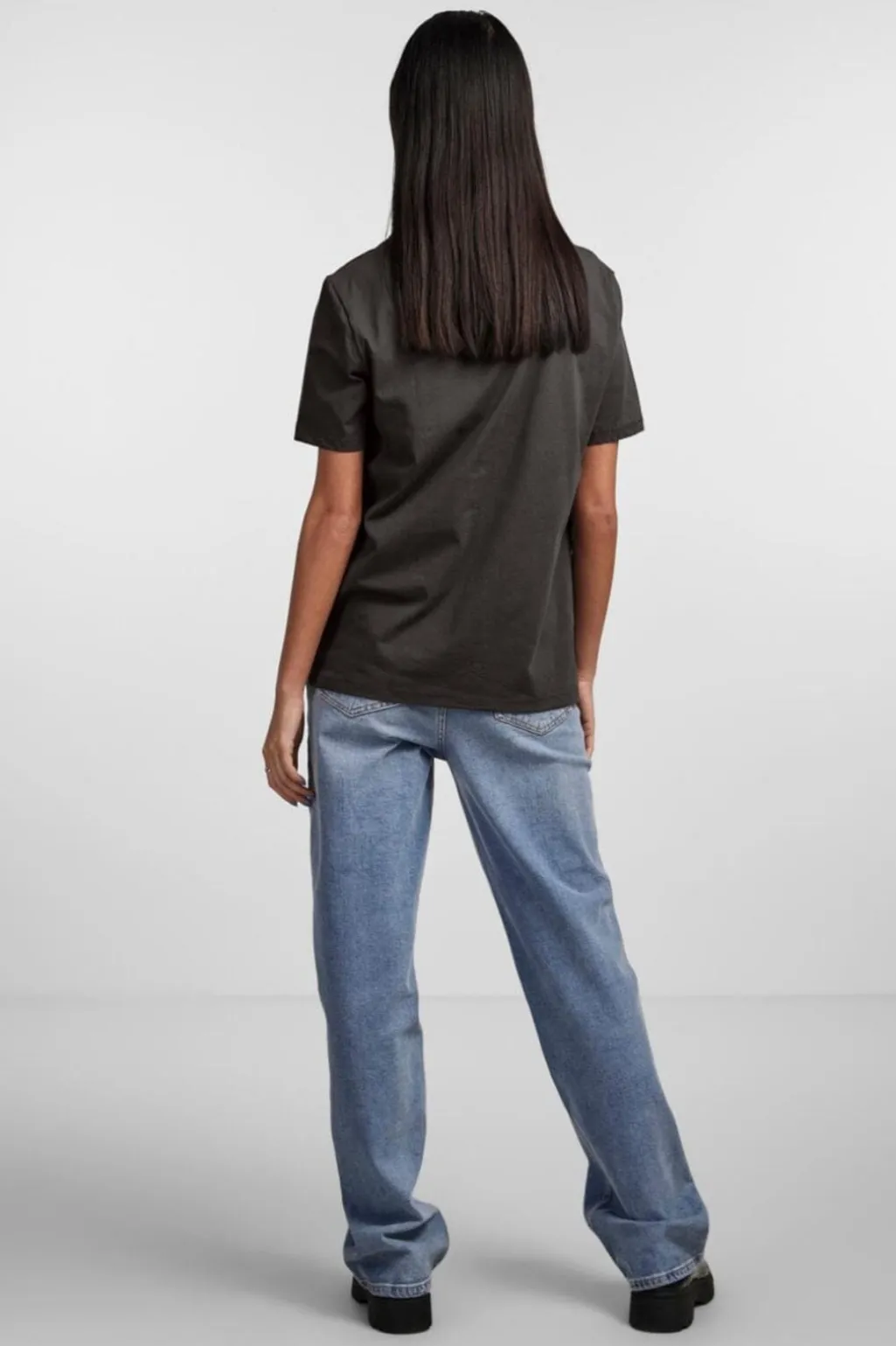 Sort t-shirt fra Pieces i økologisk bomuld. T-shirten har en rund halsudskæring og korte ærmer.