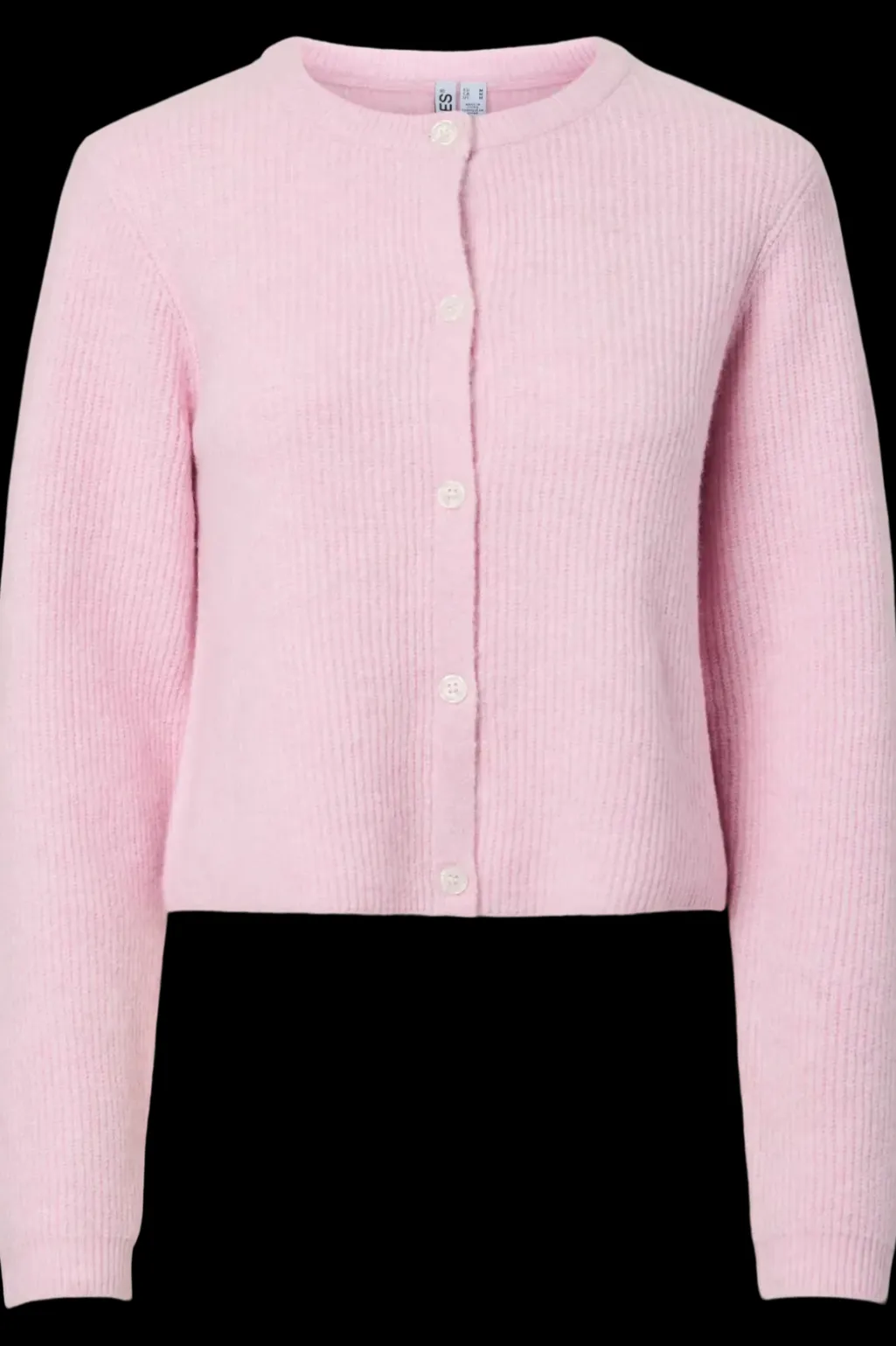 Strikket cardigan fra Pieces i lyserød meleret farve. Cardiganen har rund halsudskæring, knaplukning foran og lange ærmer med et ribbet strikmønster.