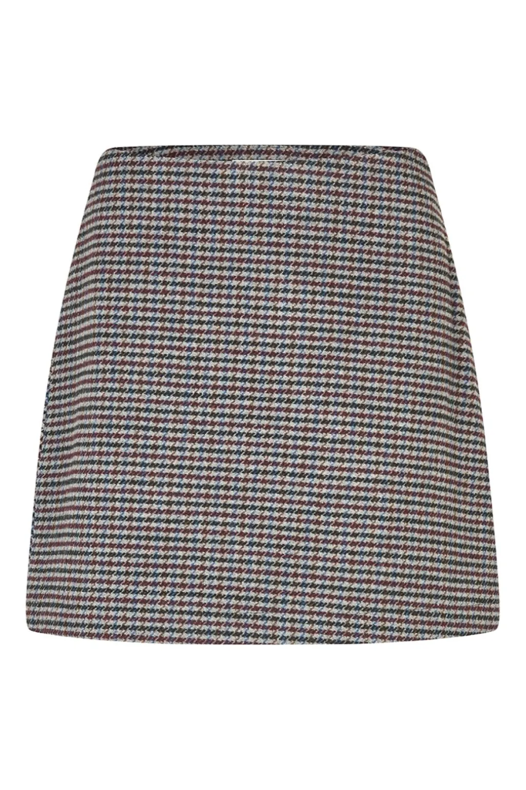 Kort nederdel i uldblanding. Pektinmd nederdelen har linning og en usynlig lynlås i siden. Modellen er 175 cm høj og har en str. S/36 på.