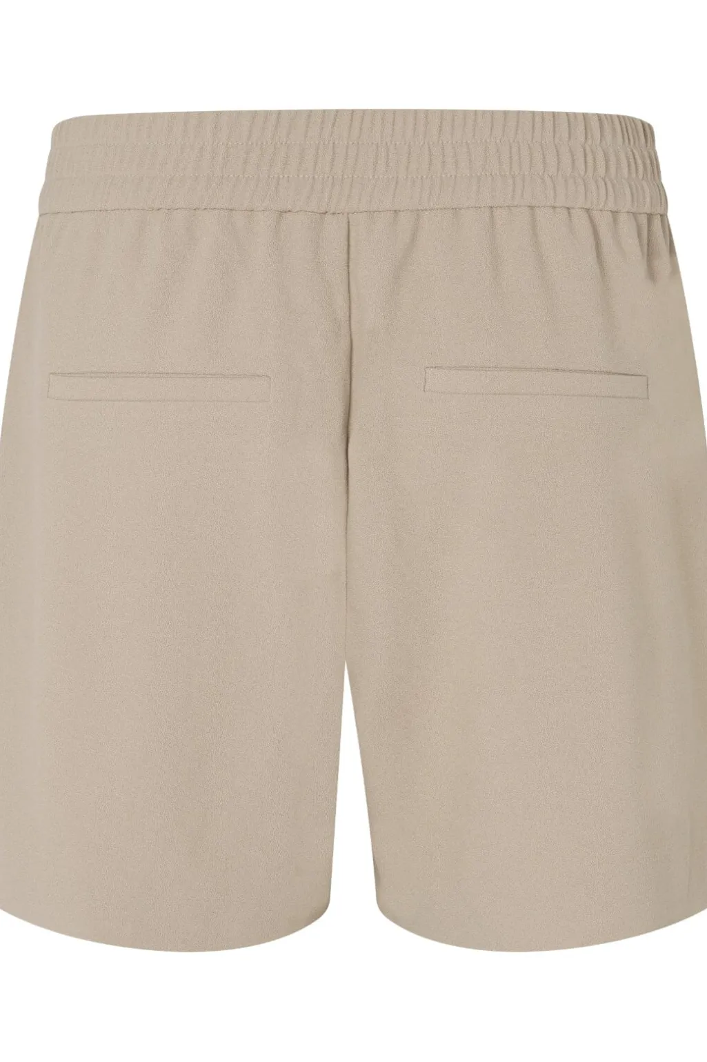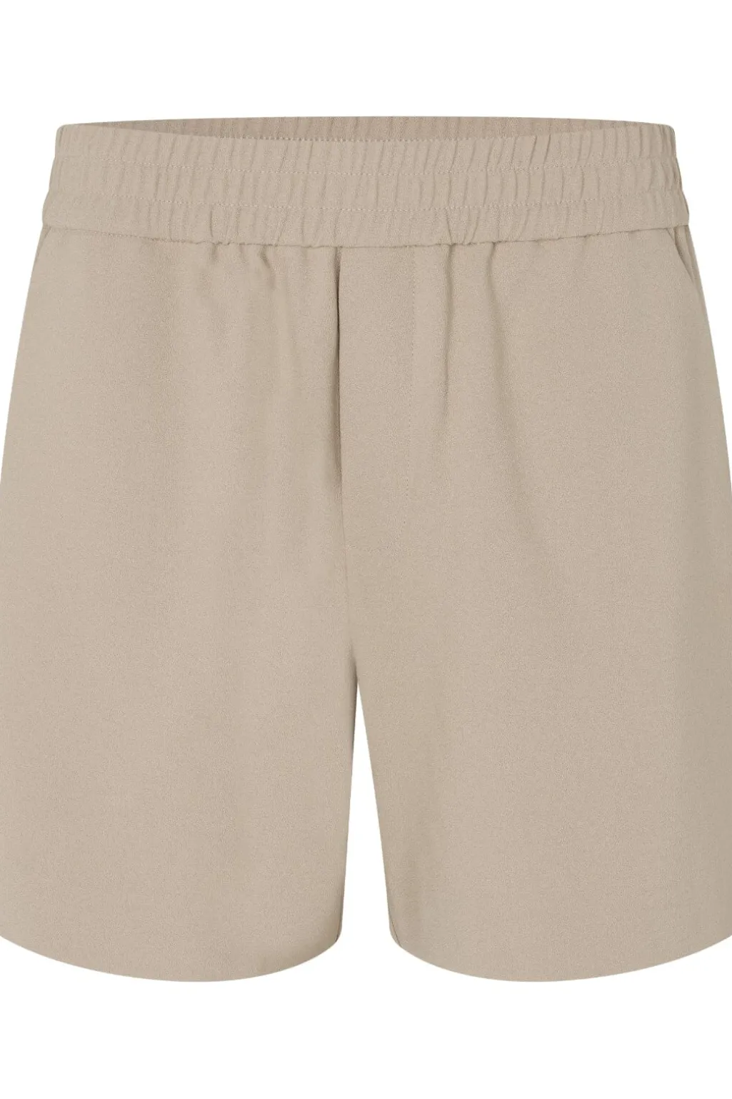 Beige shorts fra MbyM i White Pepper. De har lårlængde med en afslappet pasform og praktiske sidelommer. Shortsene er lavet med en elastisk talje.