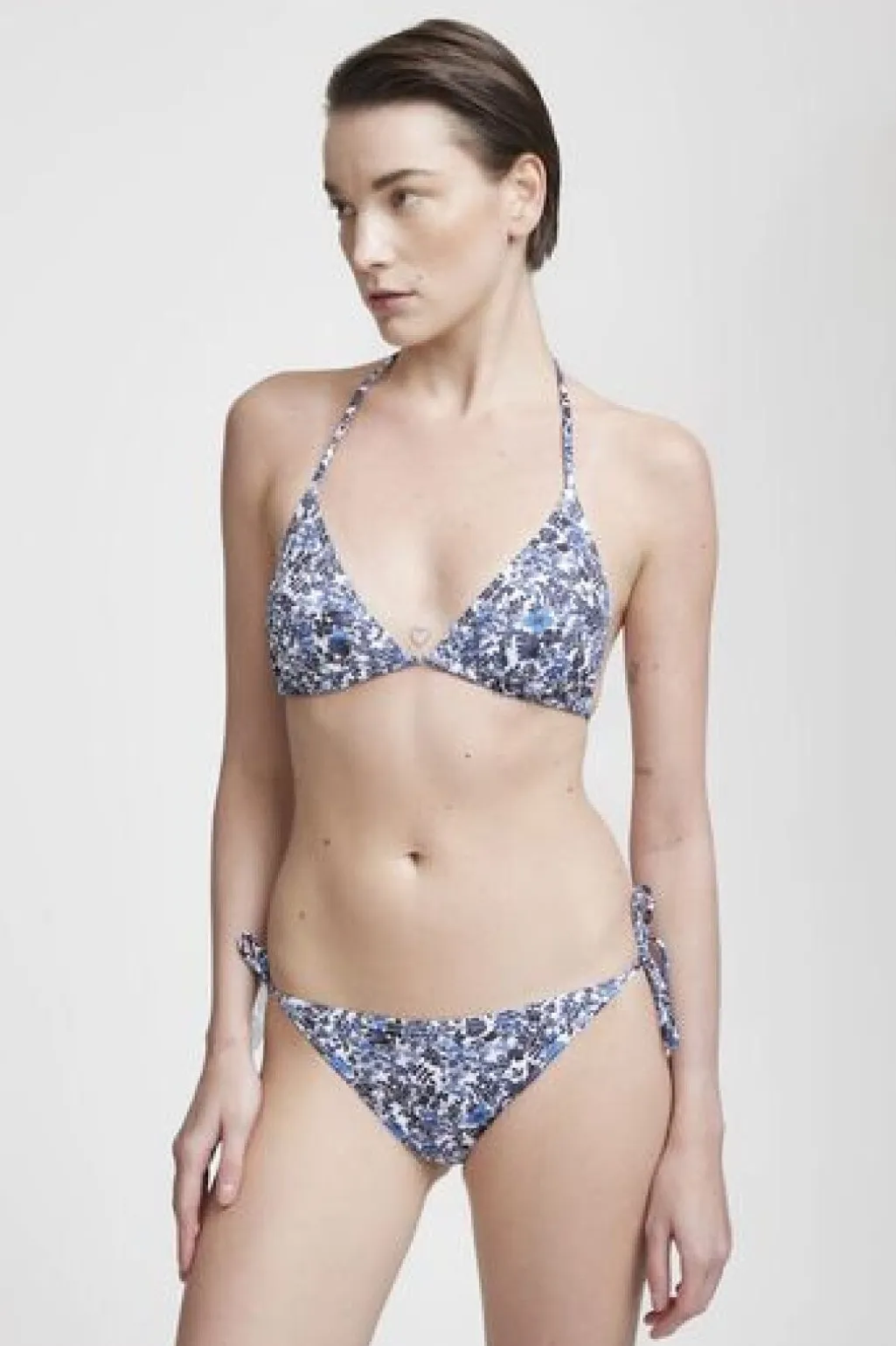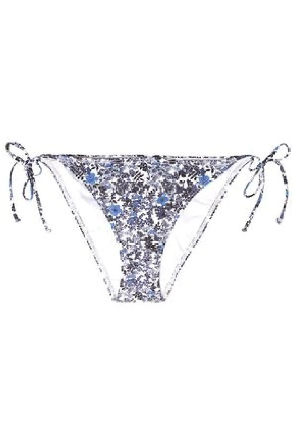 Bikiniunderdel fra Gestuz med blåt blomstermønster. Den har bindebånd i siderne og er syet i en blød kvalitet med stretch, der giver god bevægelsesfrihed.