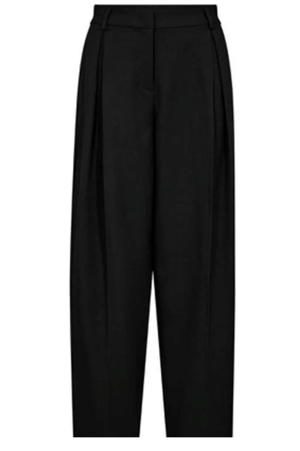 Sorte plisserede bukser fra Haute L’Amitié med høj talje og løs, lige pasform. Bukserne har bæltestropper og bred benvidde.