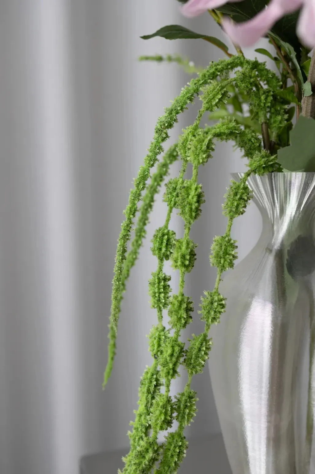 Introduktion af vores Purple Blossom Bouquet – en livlig blomsteropsats omhyggeligt fremstillet med latex for et autentisk og naturtro udseende. Buketten indeholder en fantastisk samling af blomster.Denne buket indeholder:**Plante – Hvid:** Den grønne plante stråler med sine friske grønne blade og elegante hvide blomster, hvilket tilføjer et rent og harmonisk touch.**Amaranthus 6 forgreninger:** Den grønne amaranthus stråler med sine unikke, hængende blomsterklaser og friske grønne nuancer, hvilket tilføjer en moderne og livlig elegance.**Grønne Blade:** Det frodige grønne monstera-blad fascinerer med sit dristige, splittede design og rige smaragdgrønne nuance, hvilket bringer et livligt og forfriskende strejf af naturens elegance til enhver opsats.**Krysantemum – Lilla:** Krysantemumen imponerer med sine lagdelte, indviklede kronblade og livlige farver, der symboliserer lang levetid og glæde, samtidig med at den tilføjer et strejf af klassisk charme.