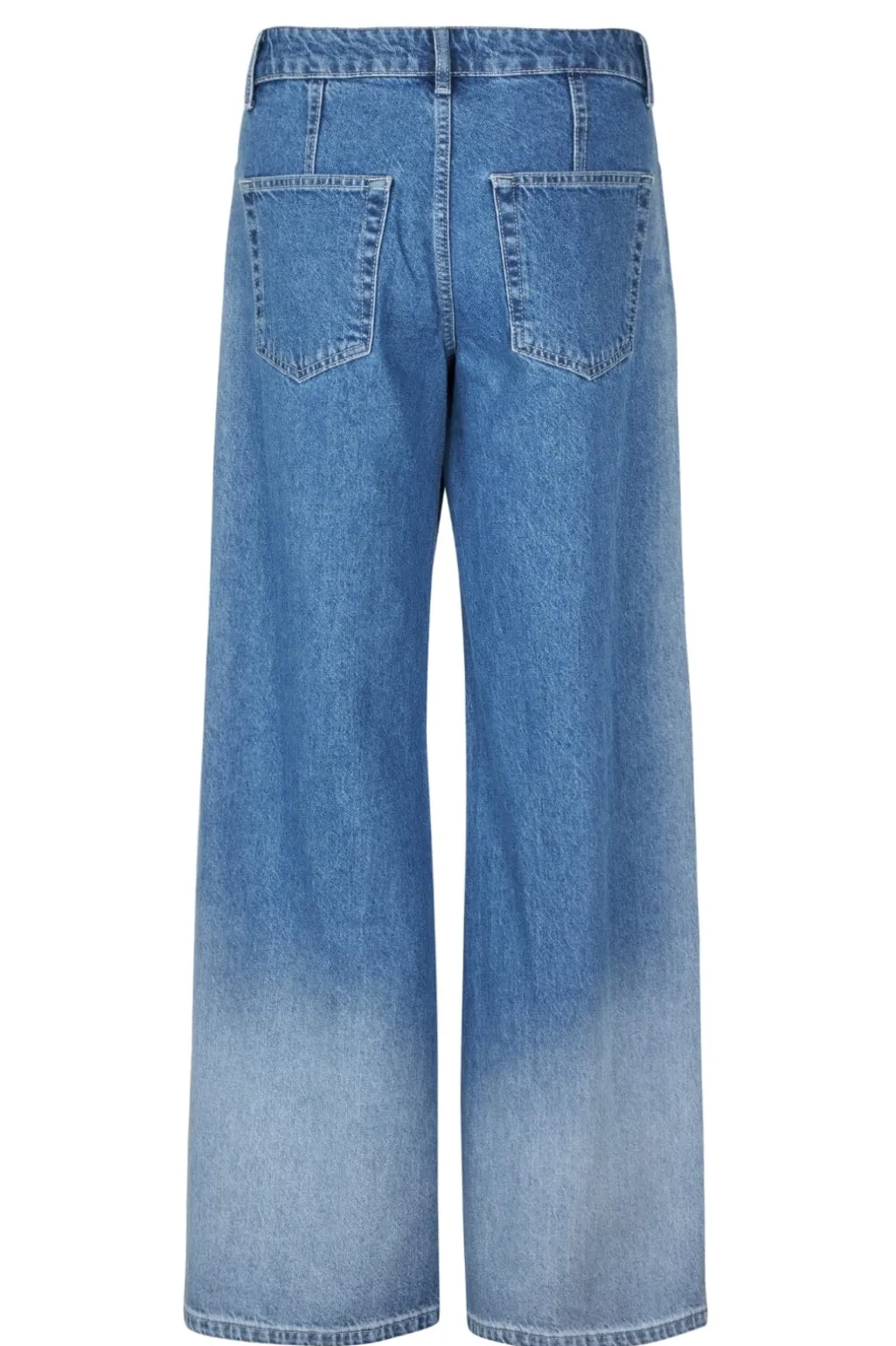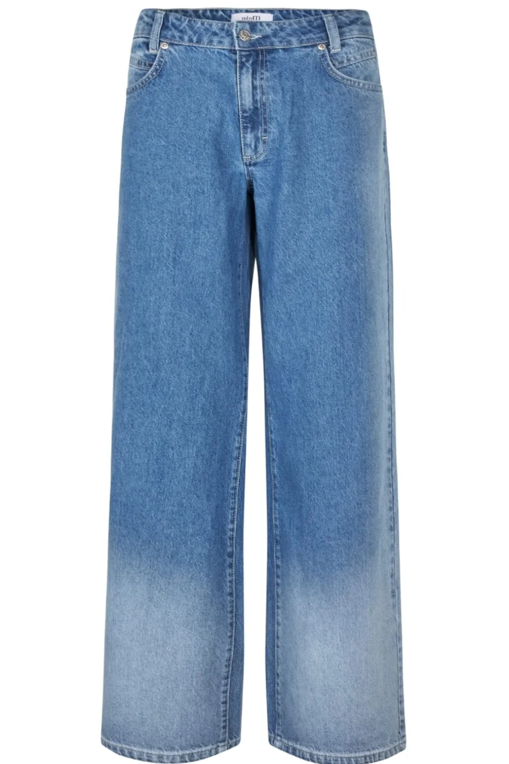 Jeans fra MbyM i lys blå denim med en gradvis falmning fra top til bund. De har en gulvlang længde og regular talje med vide ben.