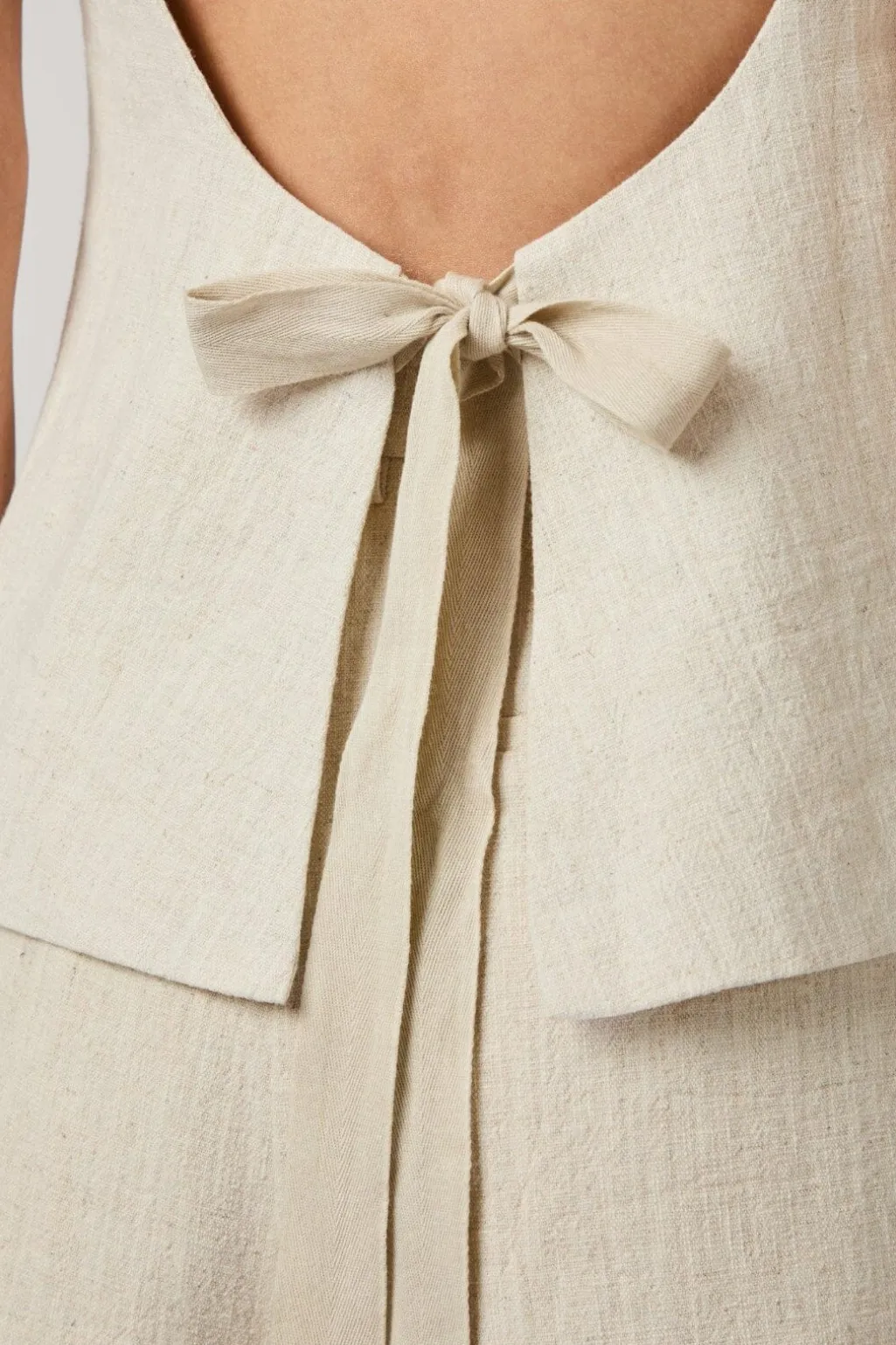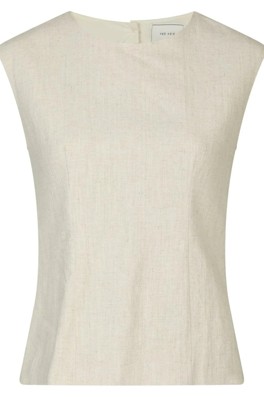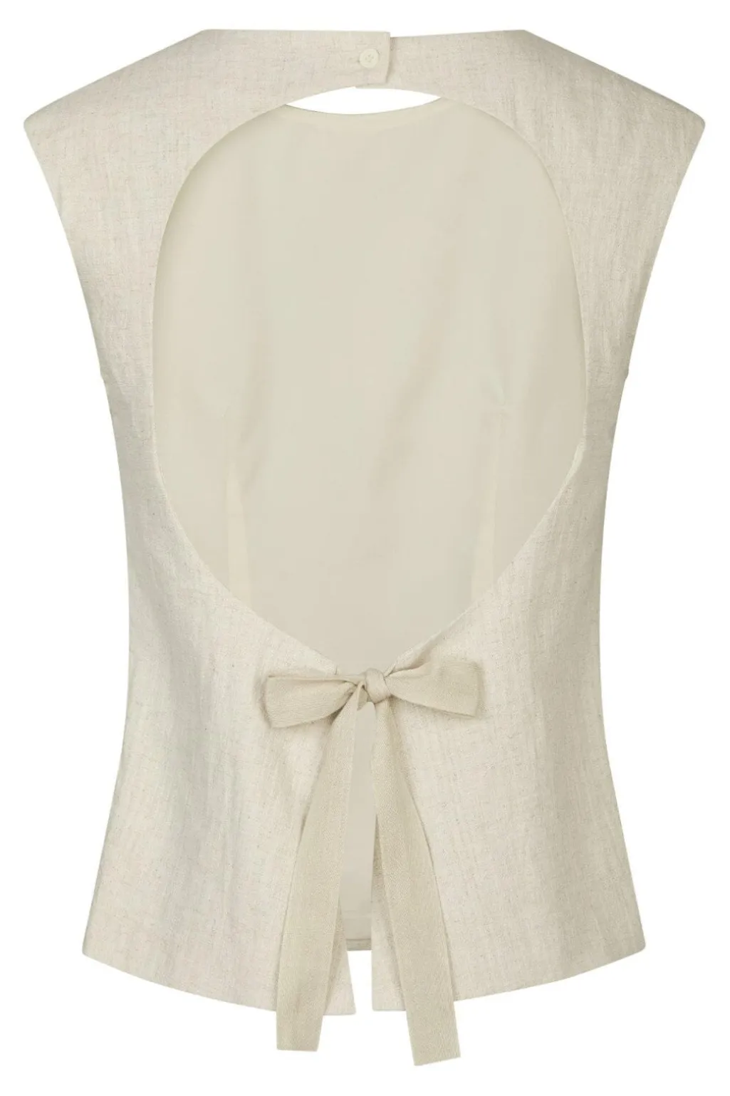 Ærmeløs top fra Neo Noir i naturfarvet ramie-stof. Toppen har en åben ryg med knapper i nakken og bindedetalje nederst på ryggen.
