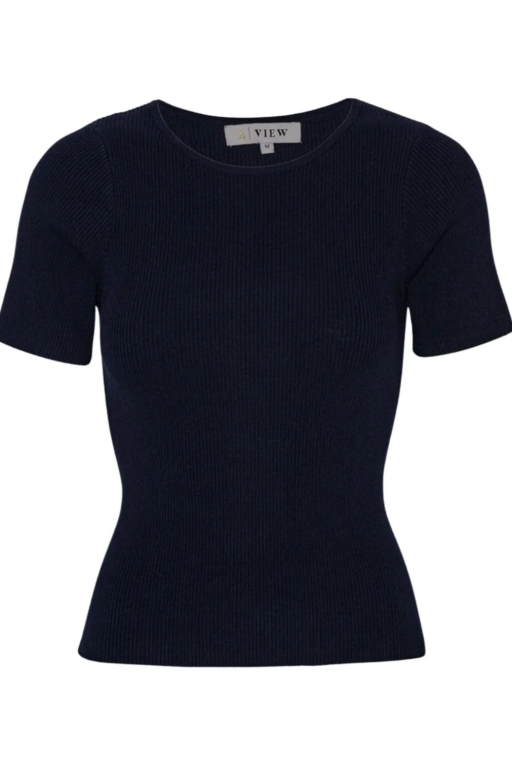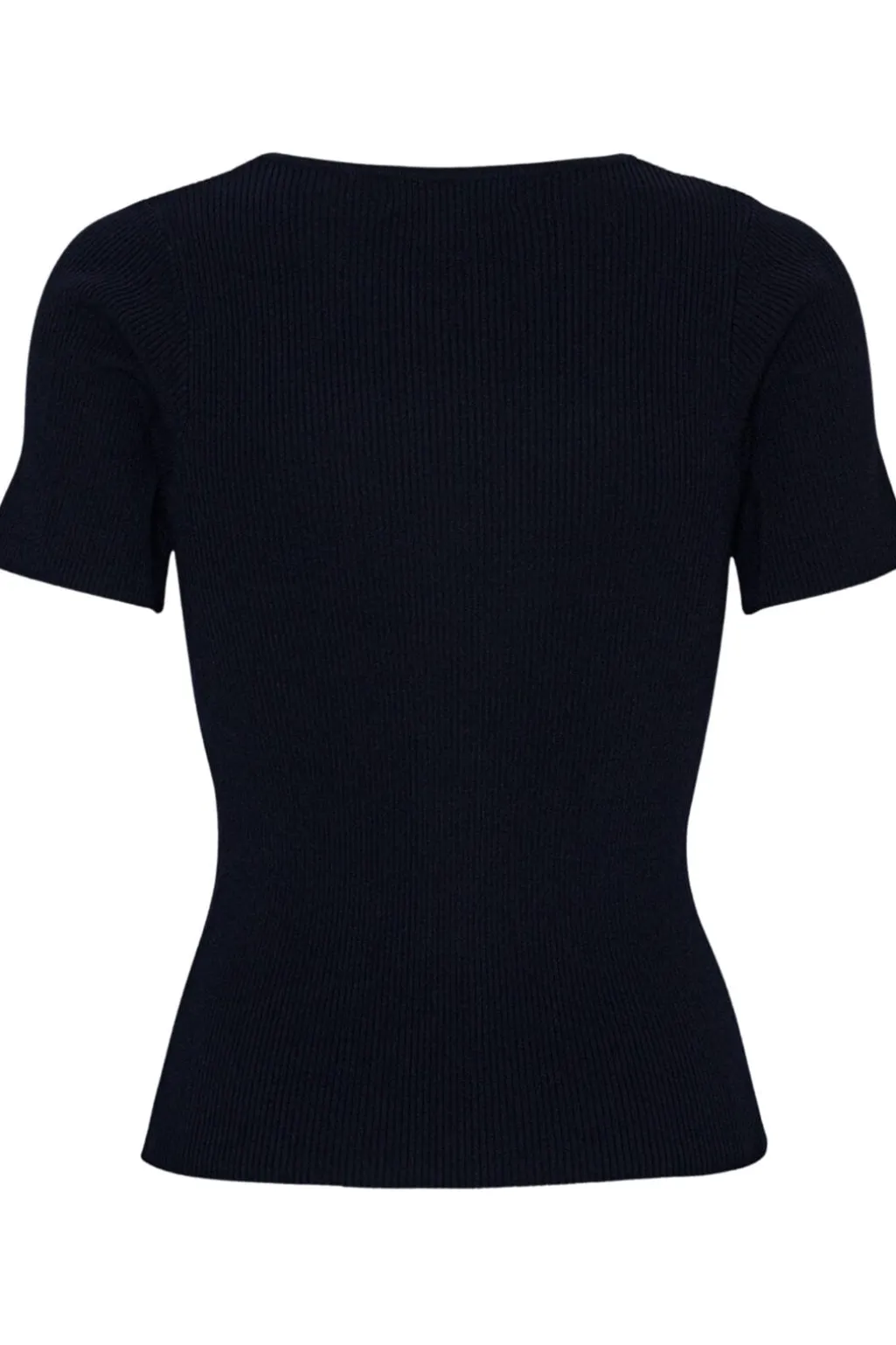 Sort ribstrikket top fra A-View med korte ærmer og rund hals. Toppen har en tætsiddende pasform og en struktureret overflade fra det ribstrikkede design.