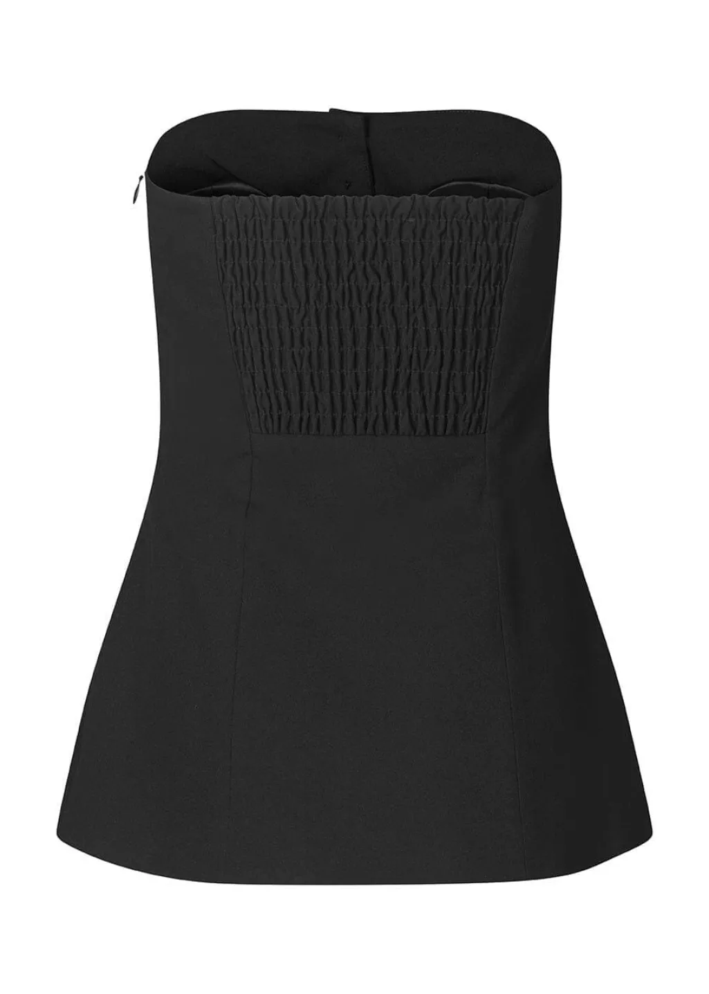 Sort stropløs top fra Modström med slim fit. Toppen har knapper foran og elastisk ryg, som giver god bevægelsesfrihed. Den er lavet af genanvendt polyester med stretch.