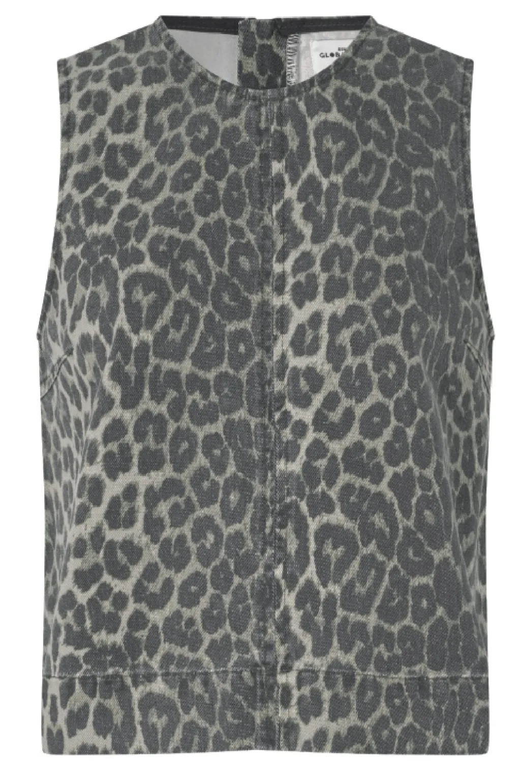 Ærmeløs top fra Global Funk i grå leopardmønster. Toppen har en rund halsudskæring og er fremstillet i bomuld med et dæmpet mønster i grå nuancer.