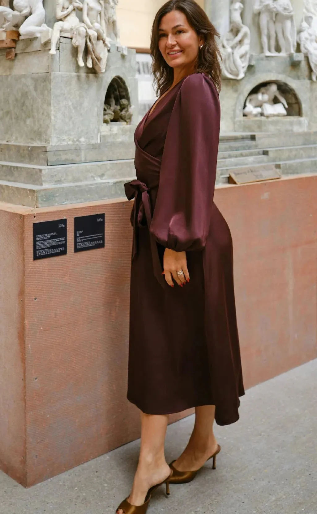 - Modellen er 176 cm høj og bærer størrelse 36