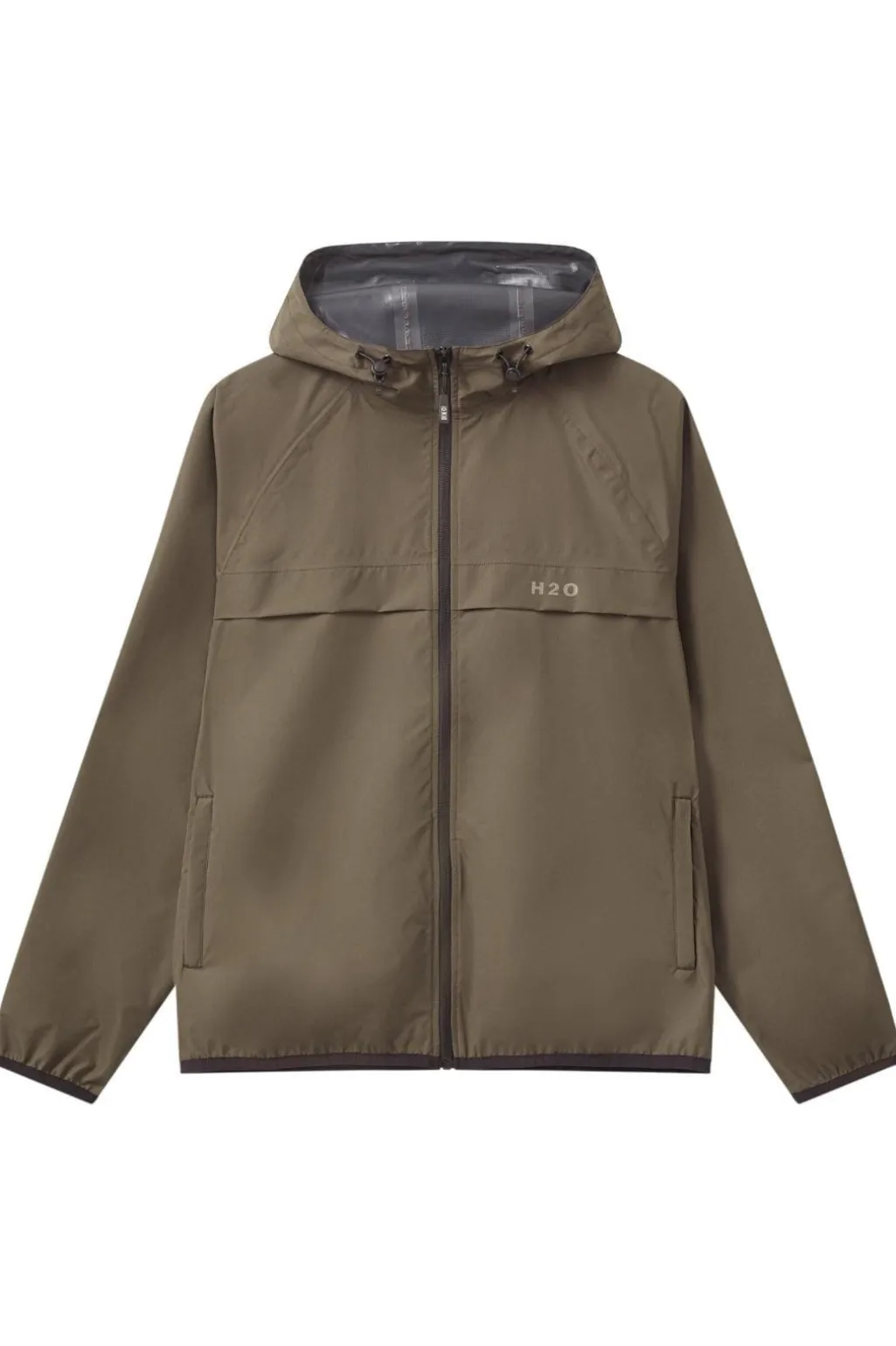 Let regnjakke fra H2O i farven Dusty Oak. Jakken er fremstillet af genbrugt polyester med tapede sømme og ECO-vandafvisning.