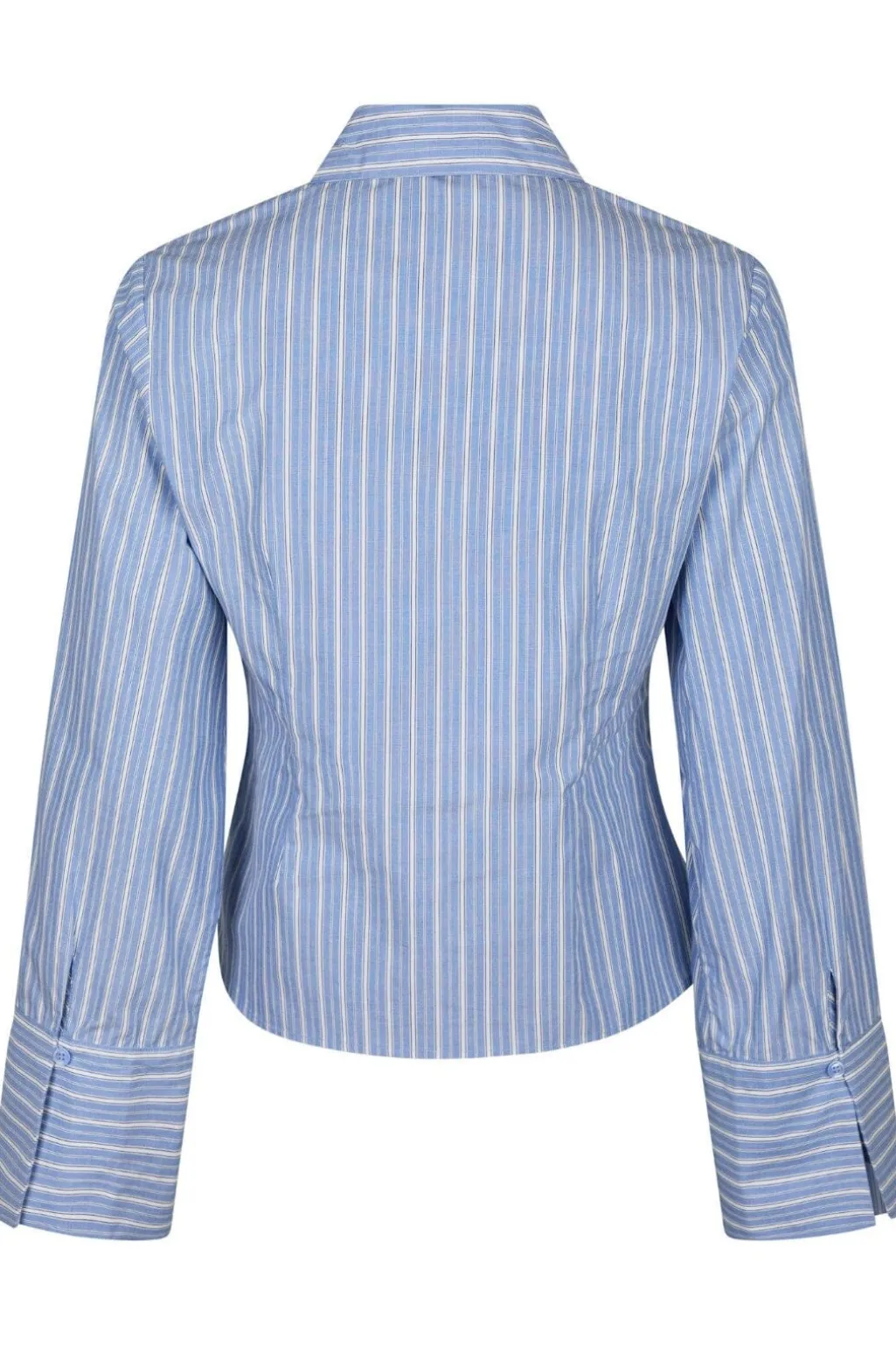 Stribet skjorte fra Neo Noir i lyseblå med hvide lodrette striber. Skjorten har en slim fit-pasform med lange ærmer og klassisk skjortekrave.