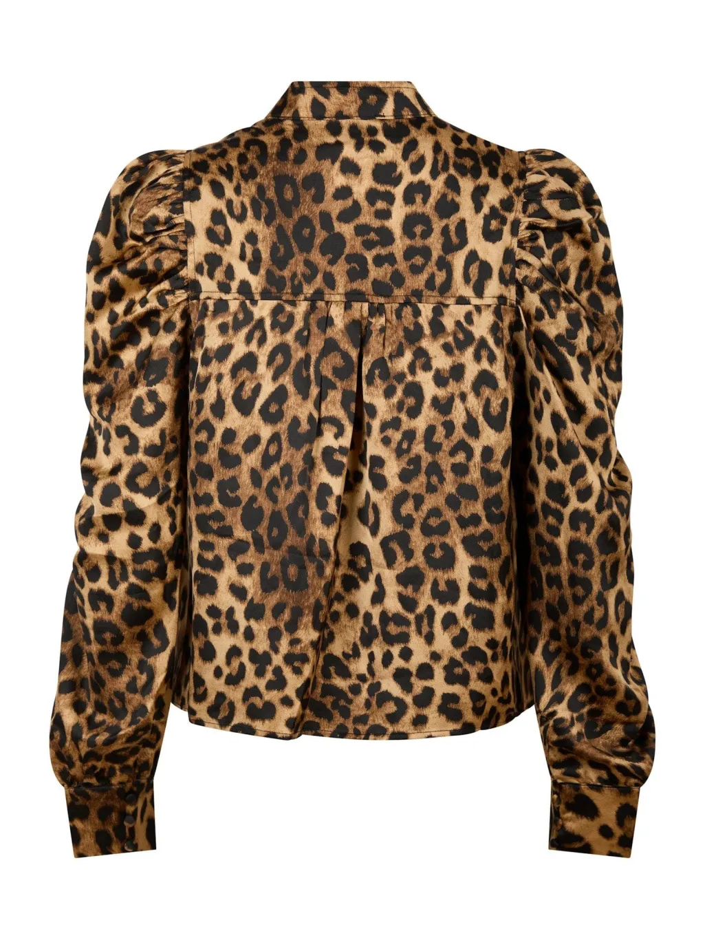 Bluse fra Neo Noir med leopardmønster i brune nuancer. Den har puffede ærmer og v-halsudskæring. Blusen passer til både hverdag og fest.