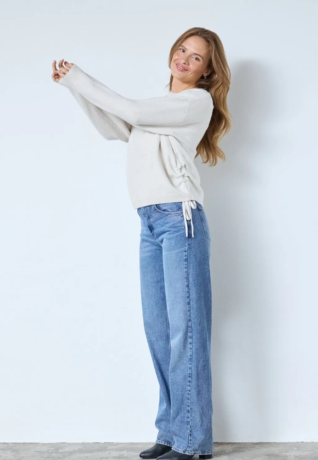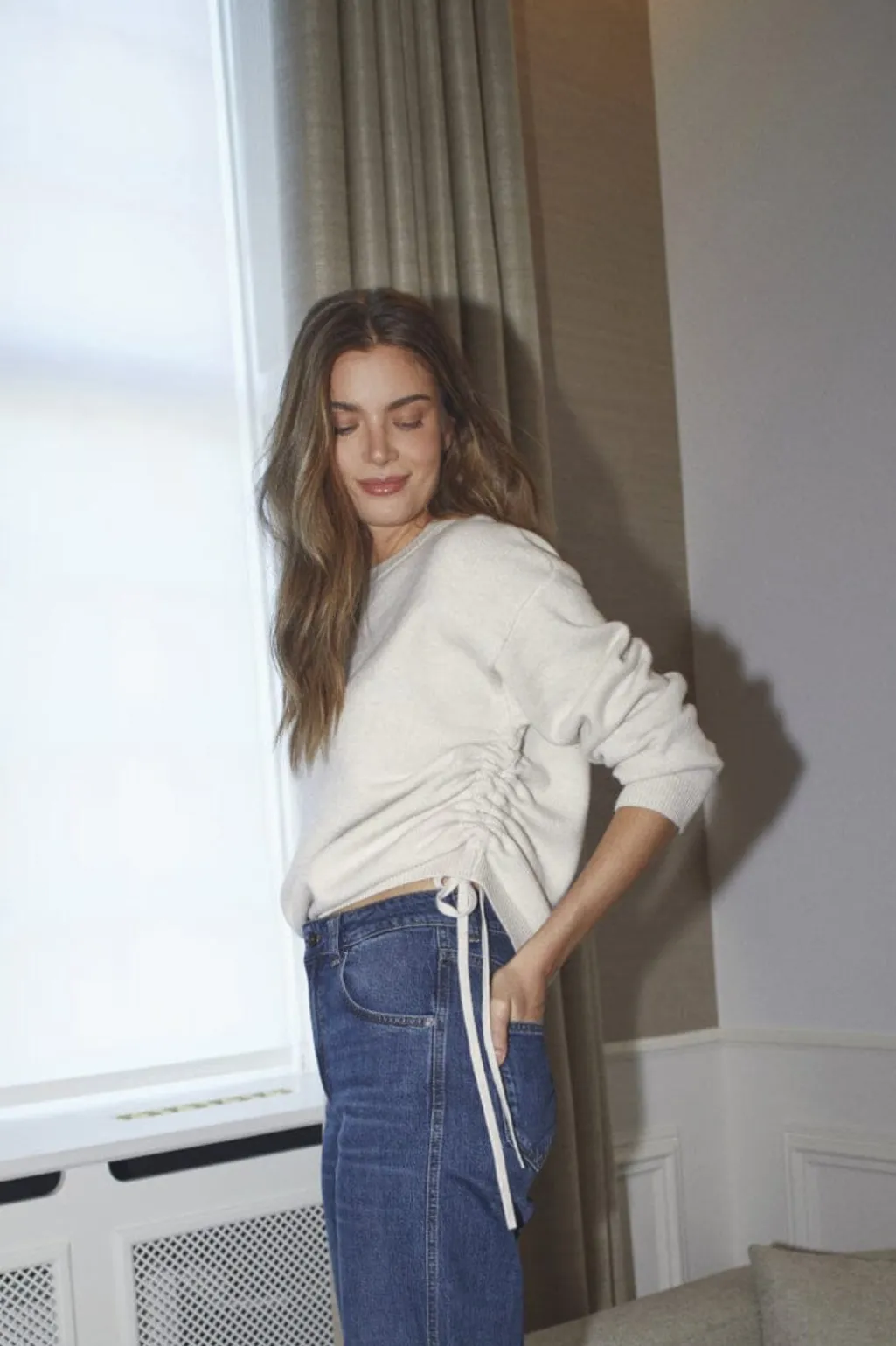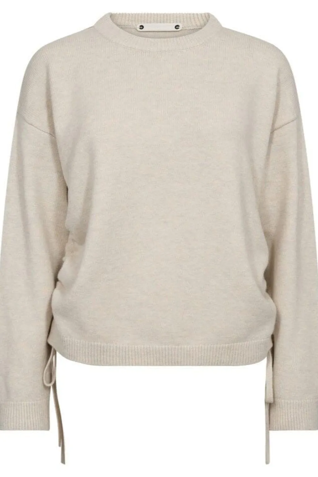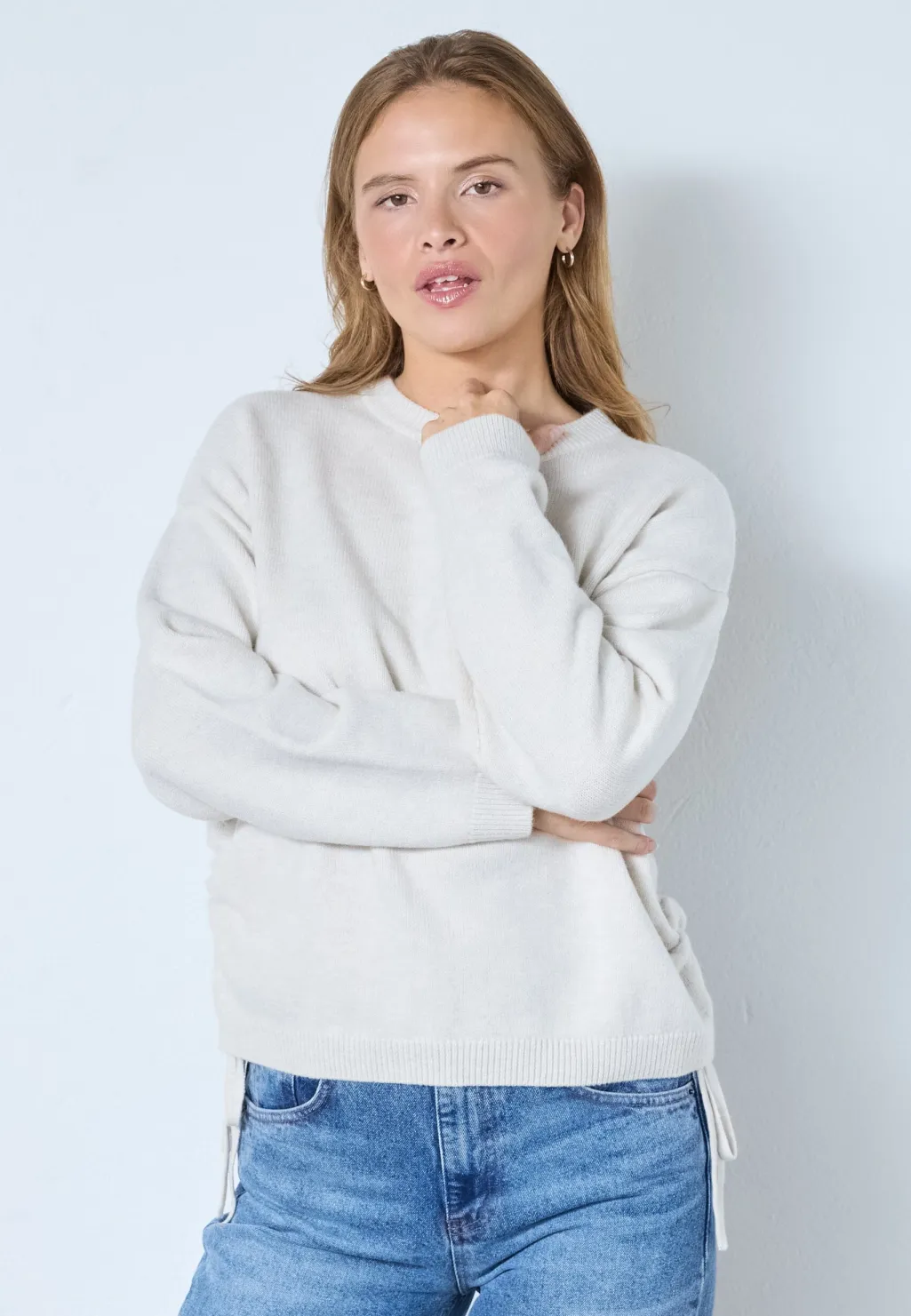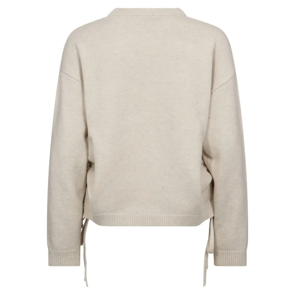 Striktrøje fra Co’Couture i elfenbensfarve med løs pasform. Den har rund halsudskæring og lange ærmer med ribkanter ved håndleddene.
