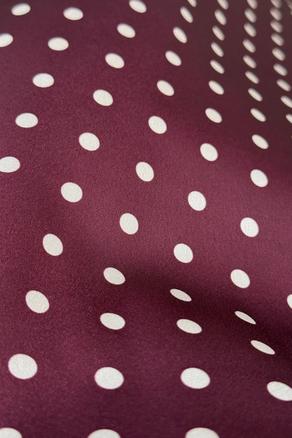 Lang nederdel fra A-bee i en dyb blommefarve med hvide polkaprikker. Nederdelen har en regulær talje og når ned til anklerne.