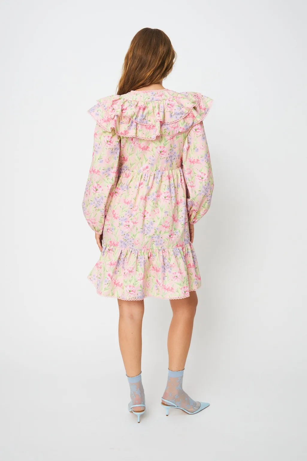 Kjole med et voluminøst design og en Onesize flæsekrave med en delikat blondekant. Kjolen har en løs pasform og en rund halsudskæring med en sløjfelukning.Stilen er størrelsessvarende, så vi anbefaler at vælge din sædvanlige størrelse.• Voluminøst design • Onesize flæsekrave • BlondekantDen første model er 175 cm høj og bærer en størrelse 36. Den anden model er 171 cm høj og bærer en størrelse 36.Materialer: 100% økologisk bomuld.