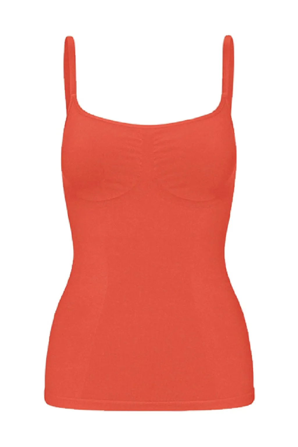 En rød cami-top fra Lykkeland Ateliér, lavet af 80 % polyamid og 20 % elastan. Toppen har en tætsiddende pasform og en firkantet halsudskæring.