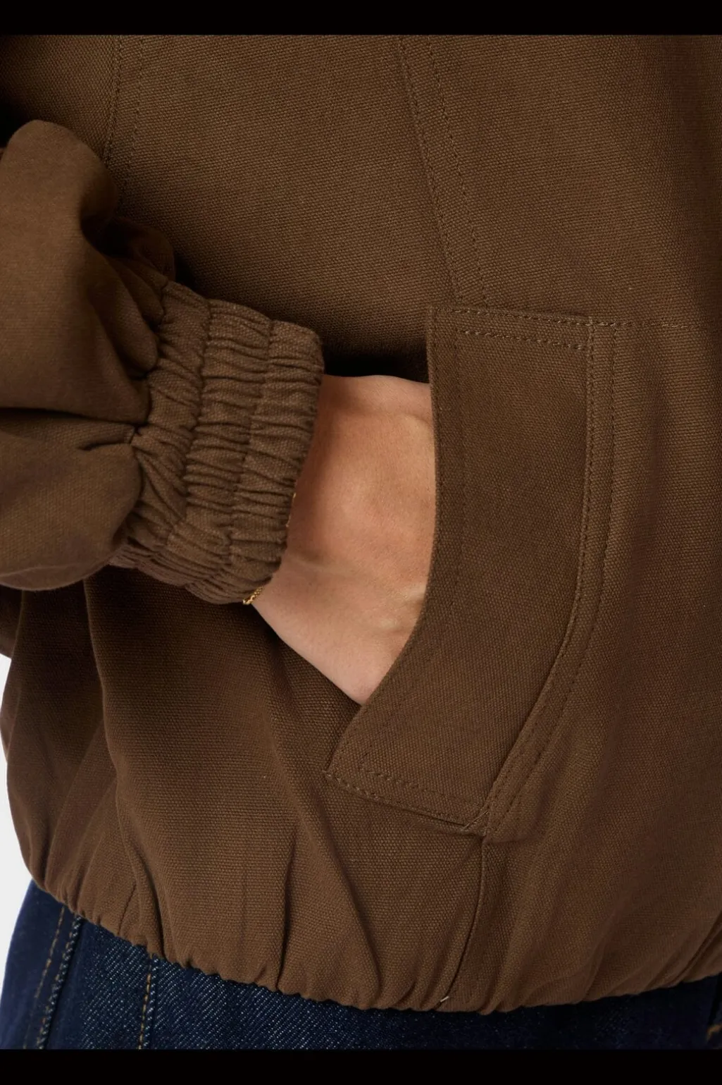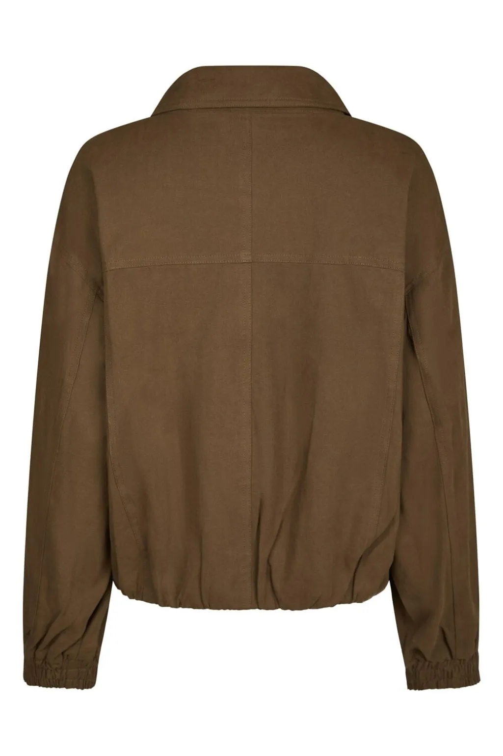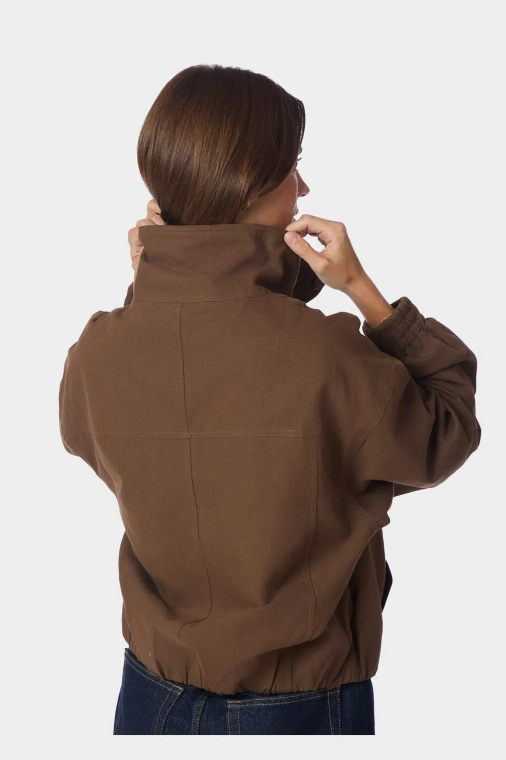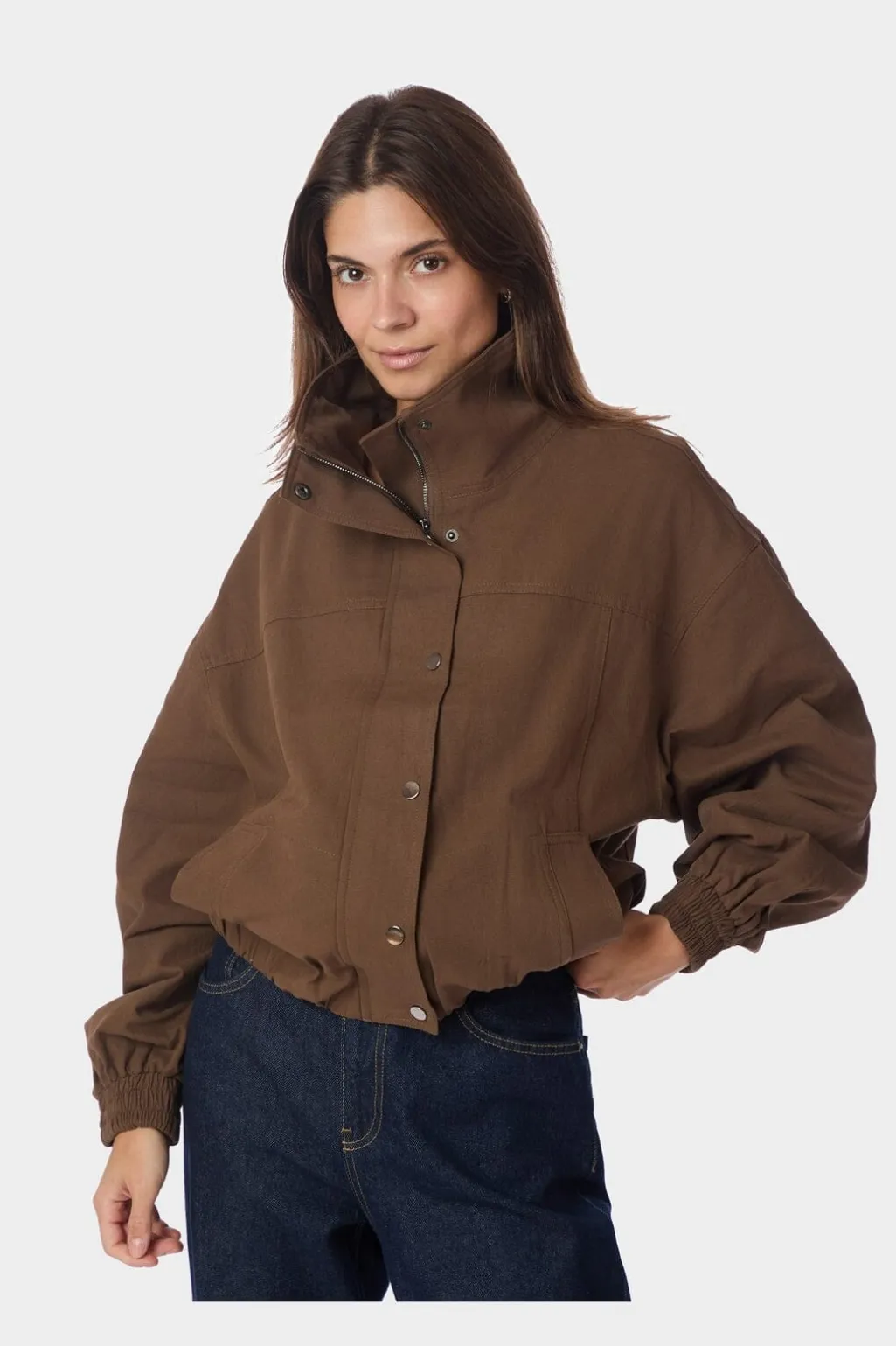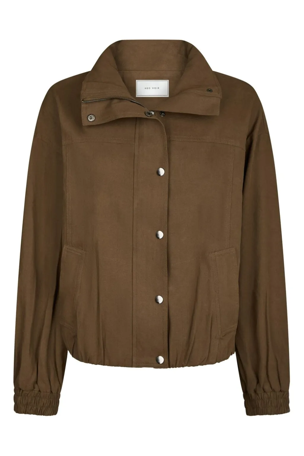 Brun bomberjakke fra Neo Noir i bomuld. Jakken har en høj krave, knaplukning foran og praktiske lommer i siderne. Elastik ved ærmekanten giver en god pasform.
