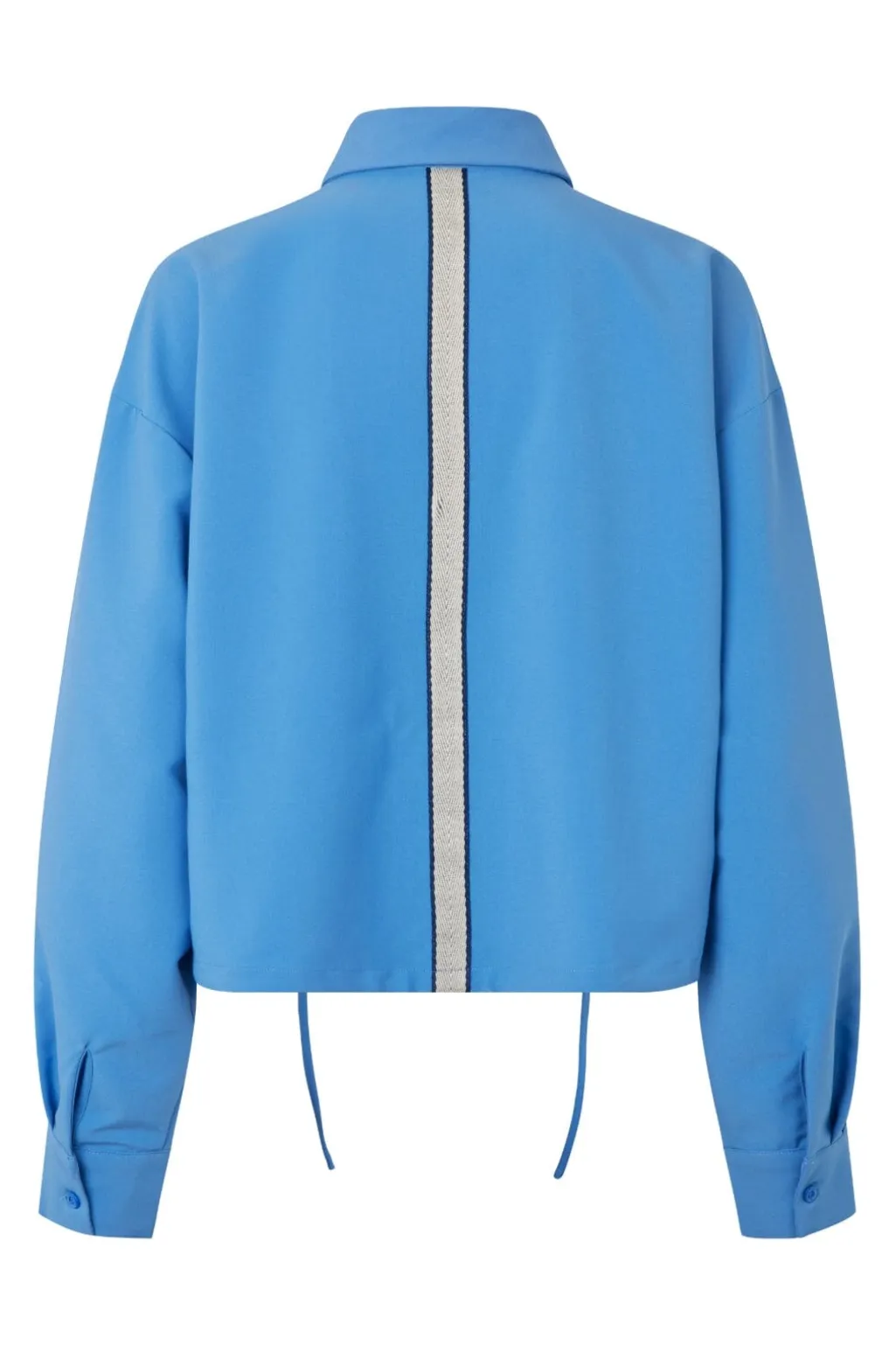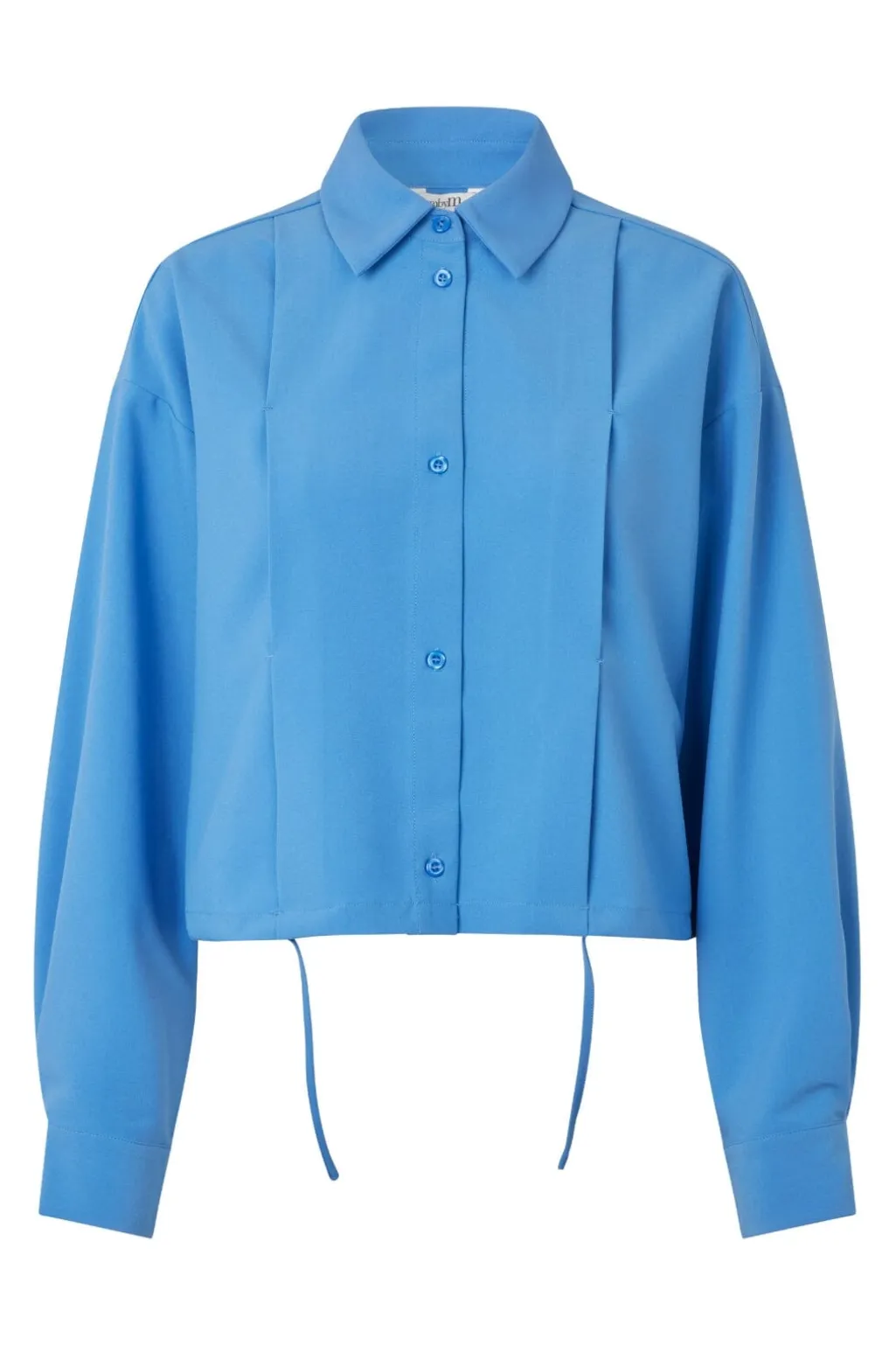 Kort skjorte fra MbyM i en lys blå nuance. Skjorten har lange ærmer, skjortekrave og en kombination af knapper og snøredetaljer, der giver mulighed for forskellige måder at style den på.
