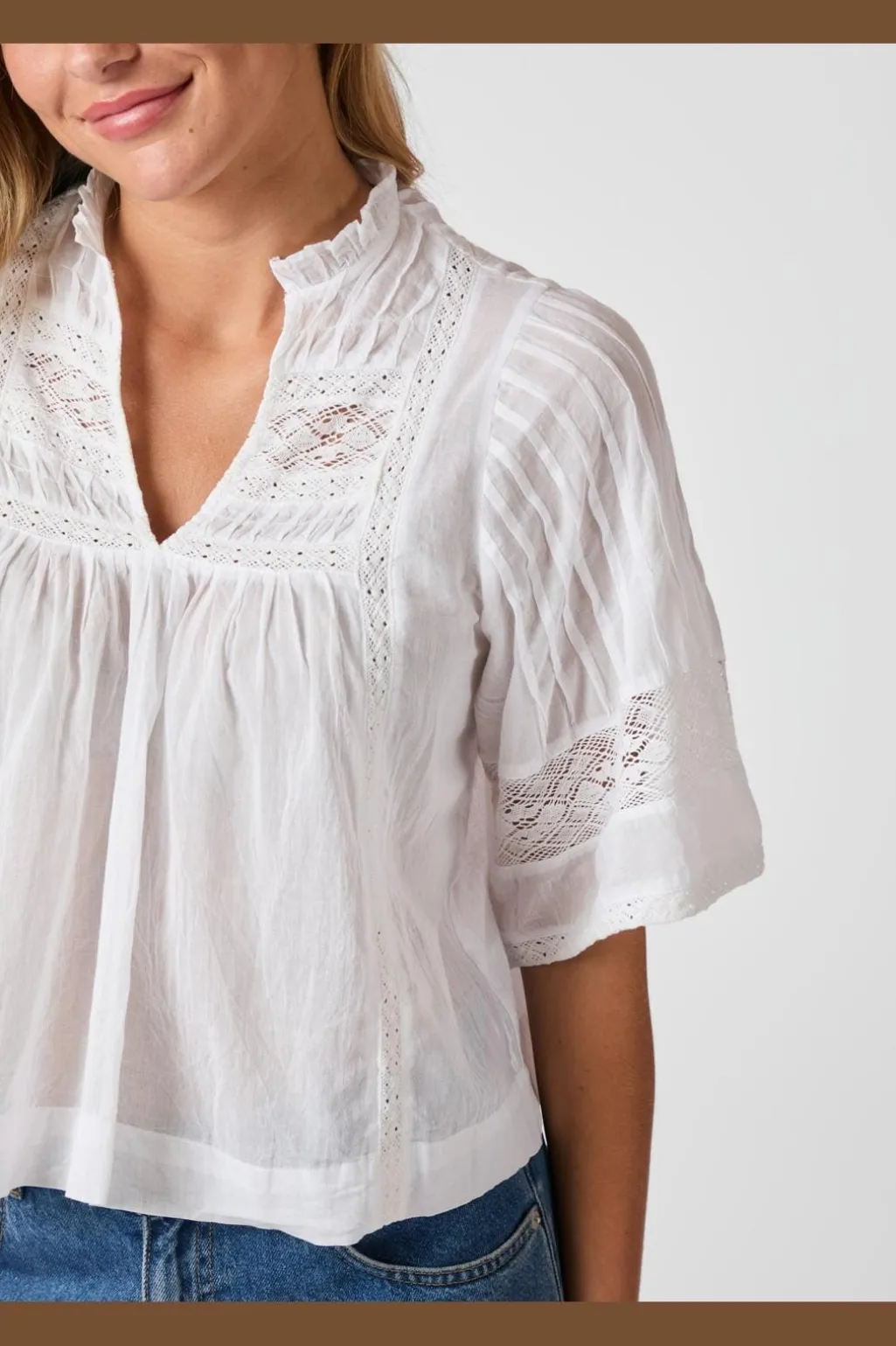 - 3/4 ærmer med blondedetaljer