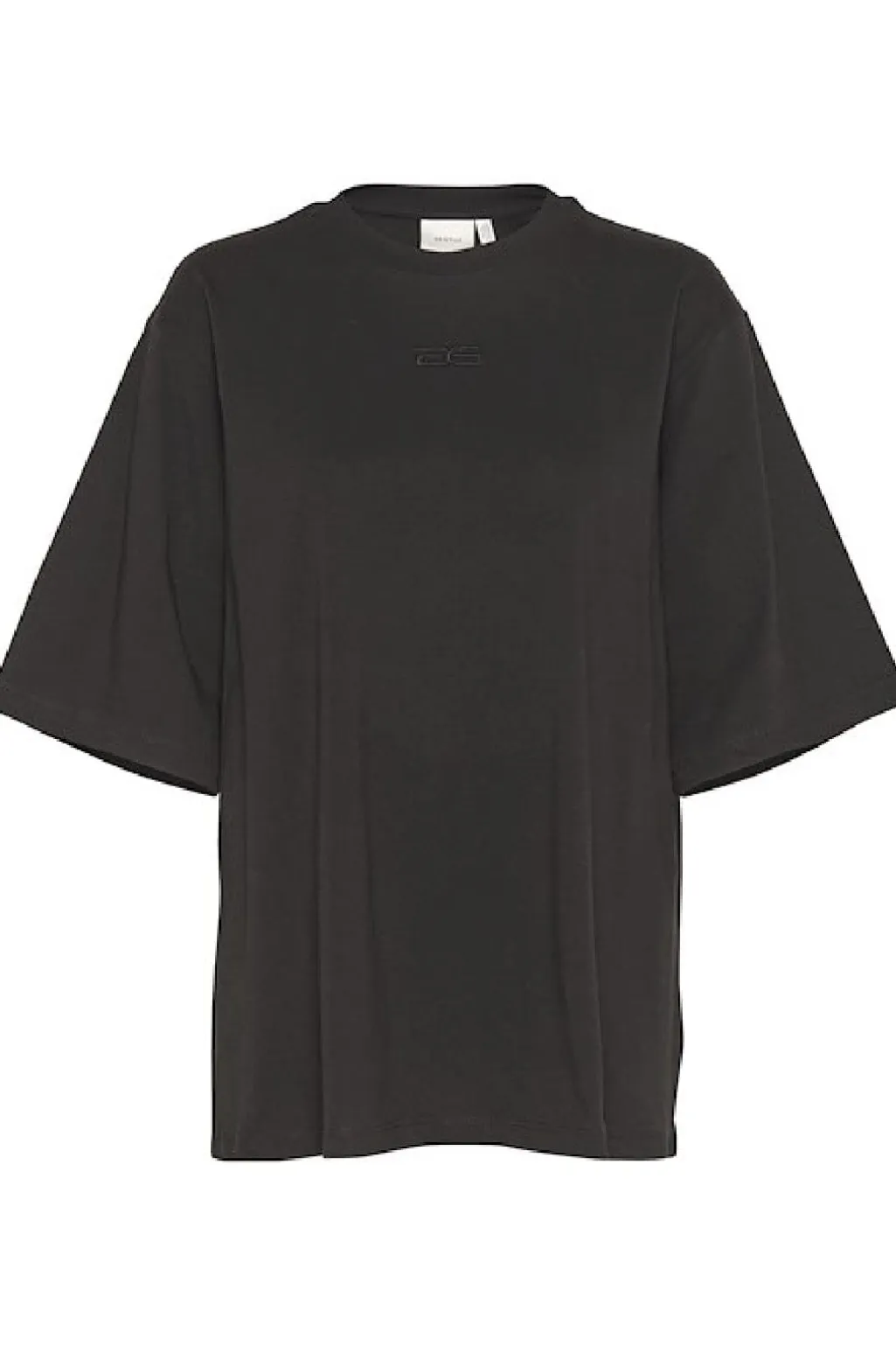 Sort t-shirt fra Gestuz med en oversized pasform. T-shirten har en rund halsudskæring og et broderet logo på forsiden, der giver et diskret præg.