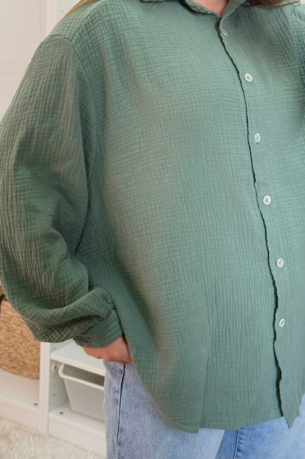 Skjorte fra A-bee i khaki med knapper hele vejen ned. Den har en klassisk krave og løse ærmer, der kan rulles op. Skjorten er lavet af et let bomuldsstof.