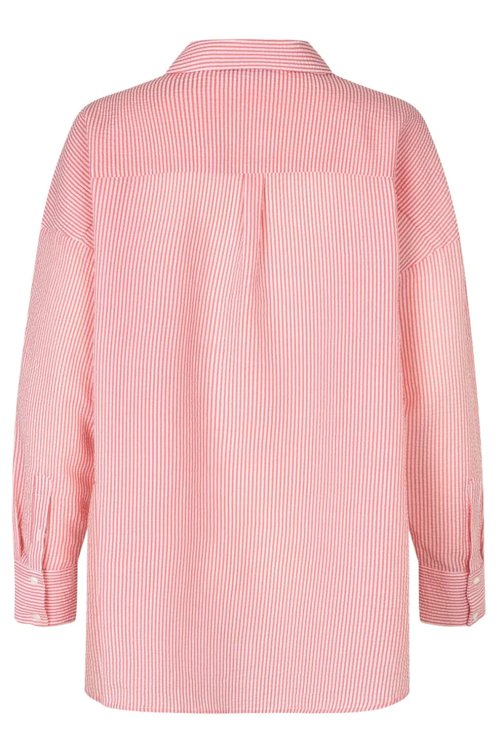 Stribet skjorte i seersucker-kvalitet med koralrosa og hvide striber. Den oversized pasform med lave skuldersømme giver et afslappet look.