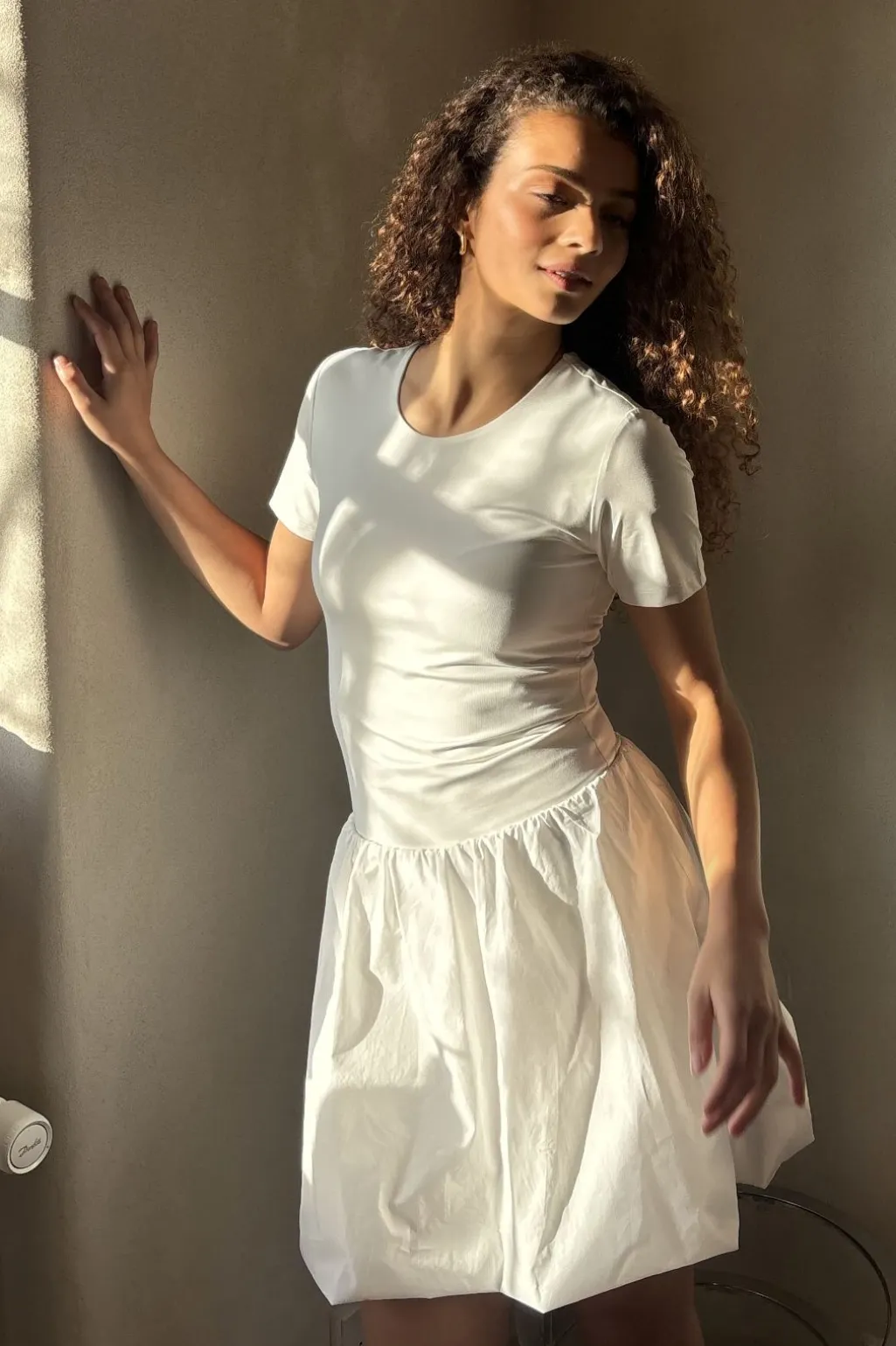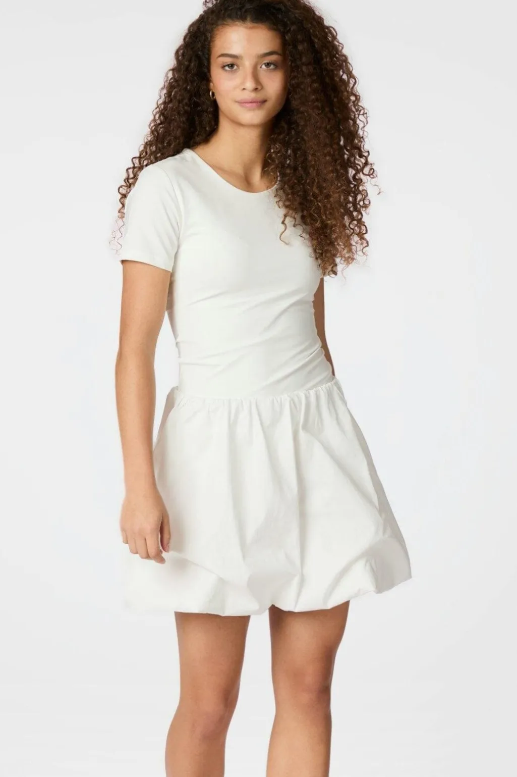 Hvid kort nederdel fra Neo Noir med ballonform og flæsedetaljer. Den fyldige silhuet og den løse pasform giver nederdelen et let og luftigt udtryk.