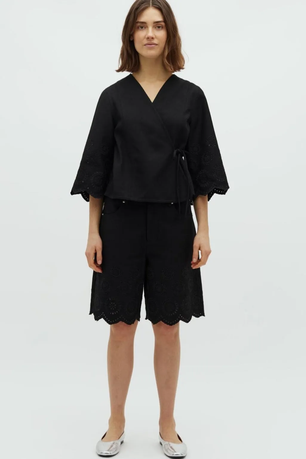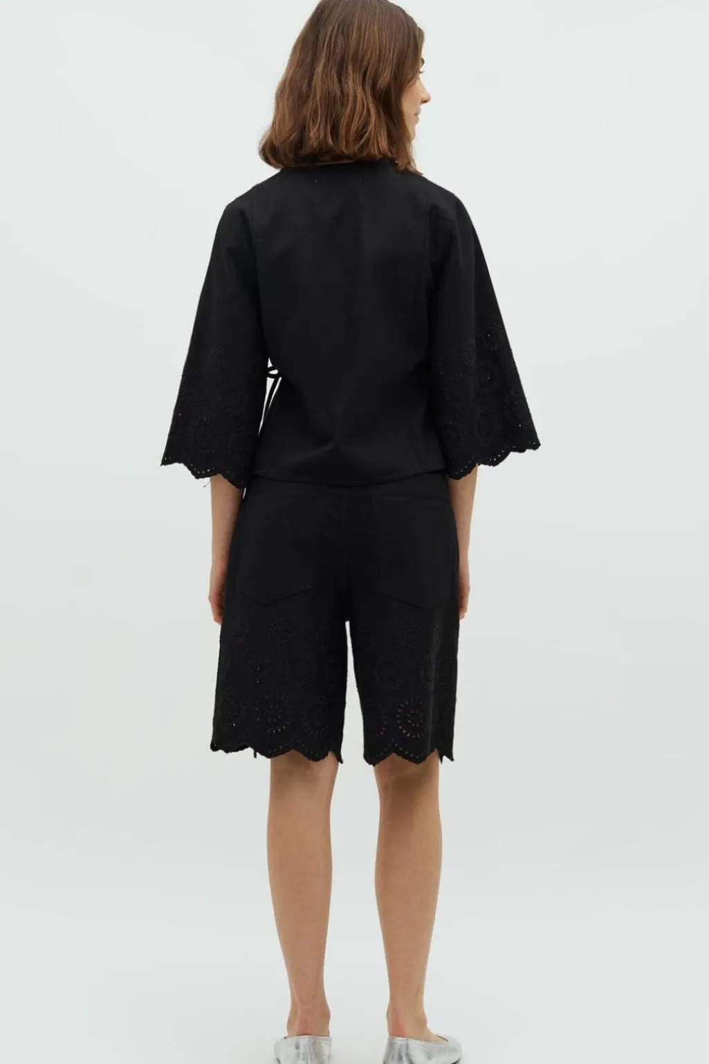 - 3/4-ærmer med scallop-kant