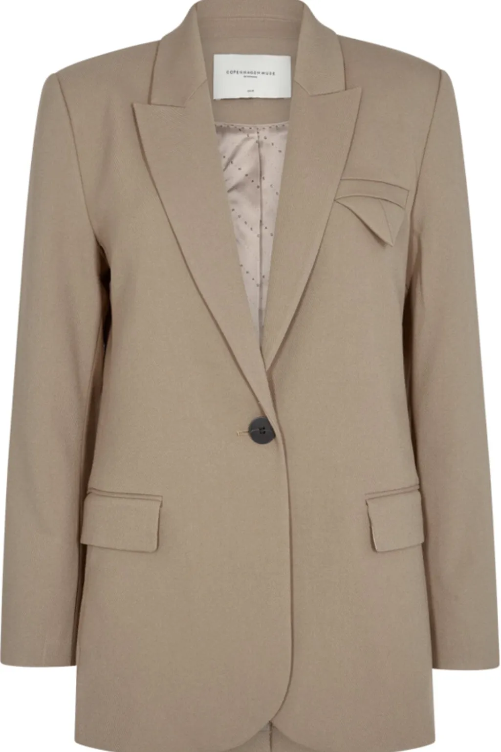 Beige blazer fra Copenhagen Muse med skjortekrave og enkeltknaplukning. Blazeren har en normal pasform og lange ærmer med manchetter.