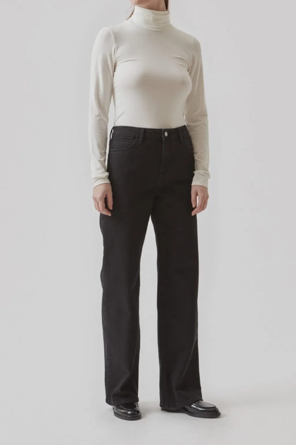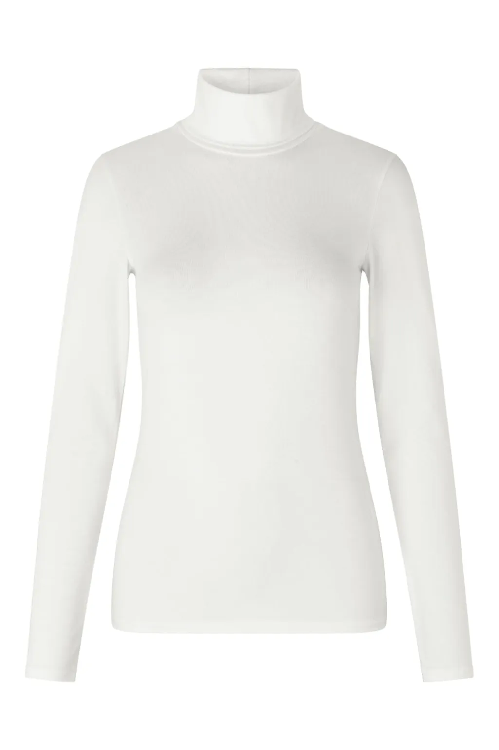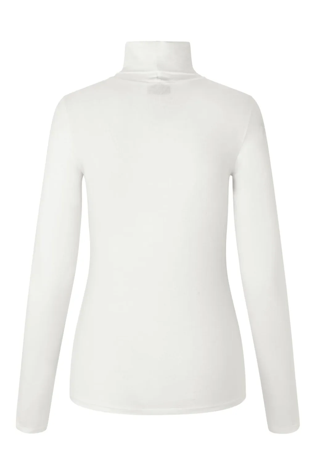 Hvid rullekravebluse fra Modström i tætsiddende pasform. Den høje hals og de lange ærmer giver god dækning, mens materialet sikrer bevægelighed og komfort.