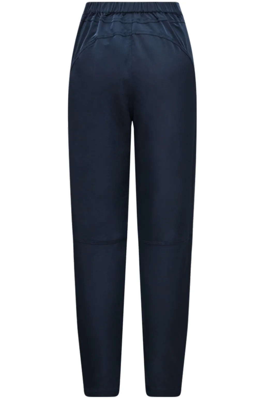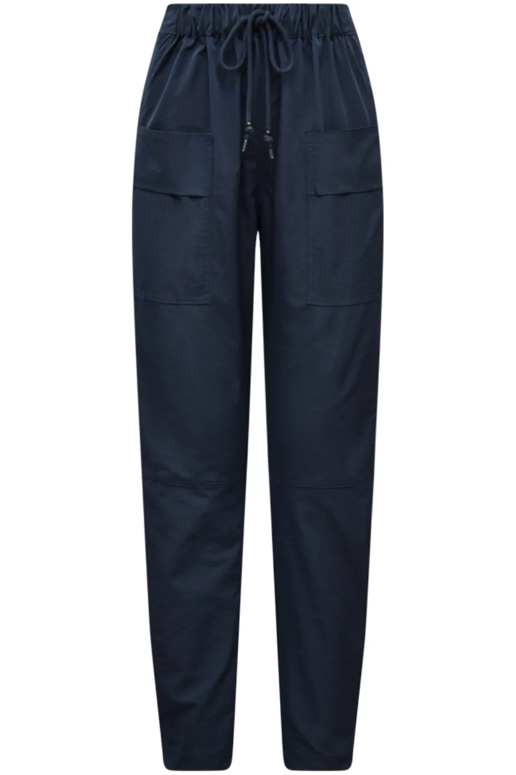 Mørkeblå bukser fra Gossia i en blød materialeblanding. Bukserne har en løs pasform med elastik og snøre i taljen samt praktiske lommer foran.