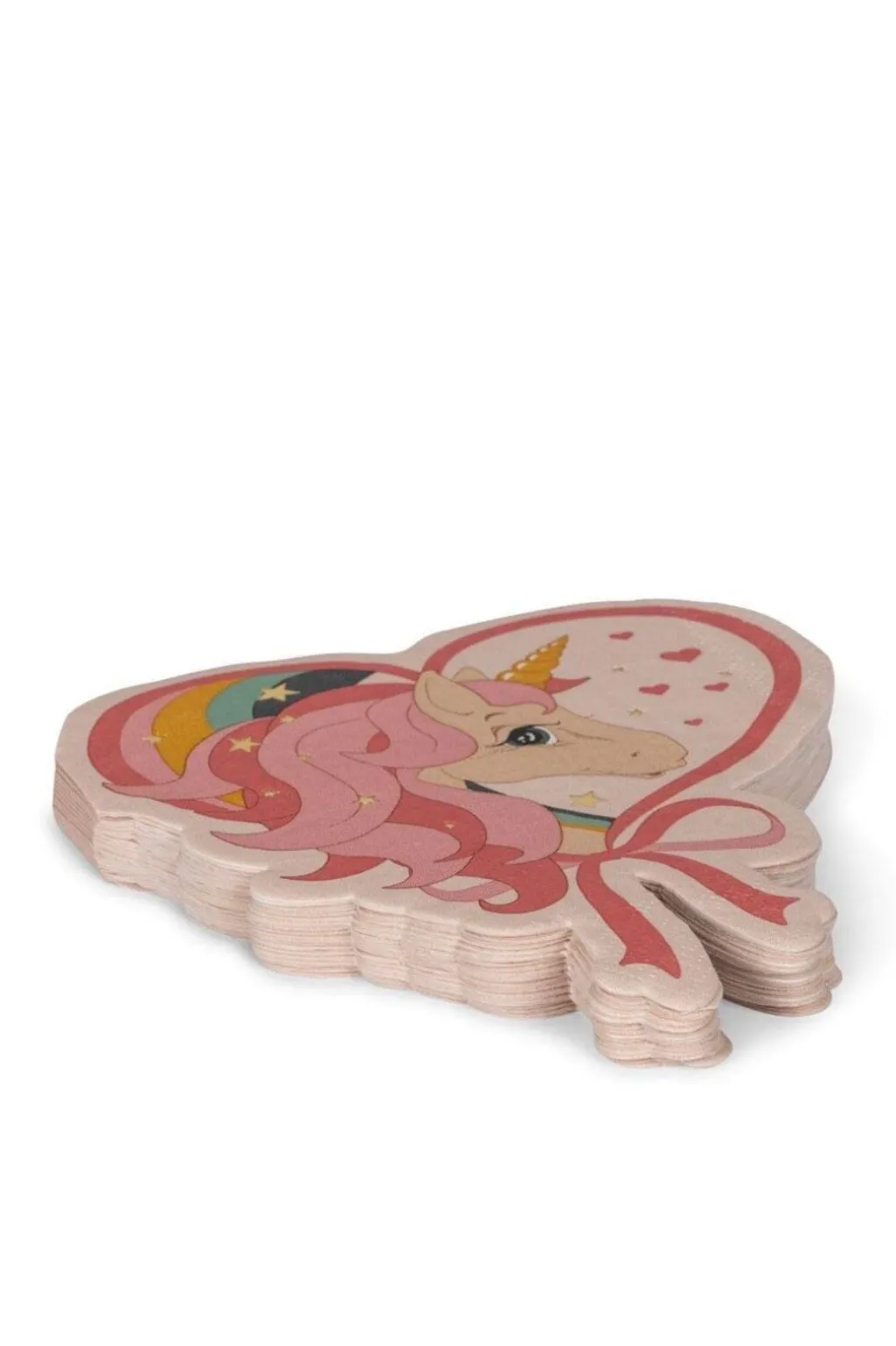 Den særlige udskæring i enhjørningeform og det farverige print med hjerter og stjerner gør servietterne velegnede til børnefødselsdage og festlige sammenkomster.