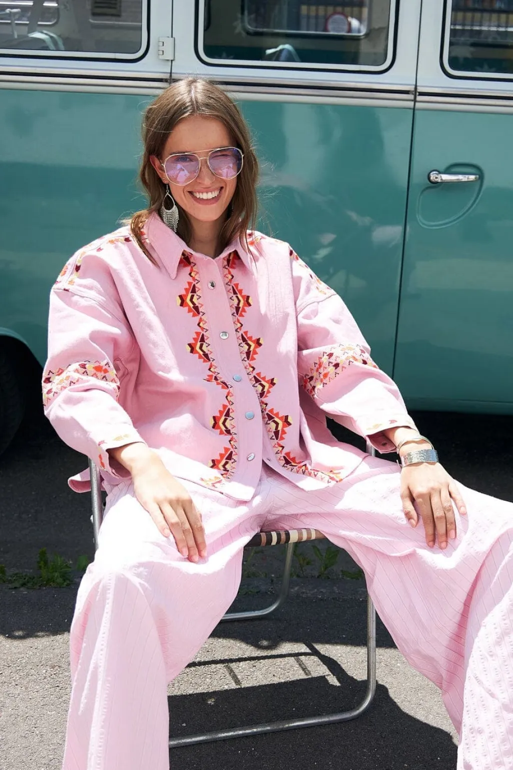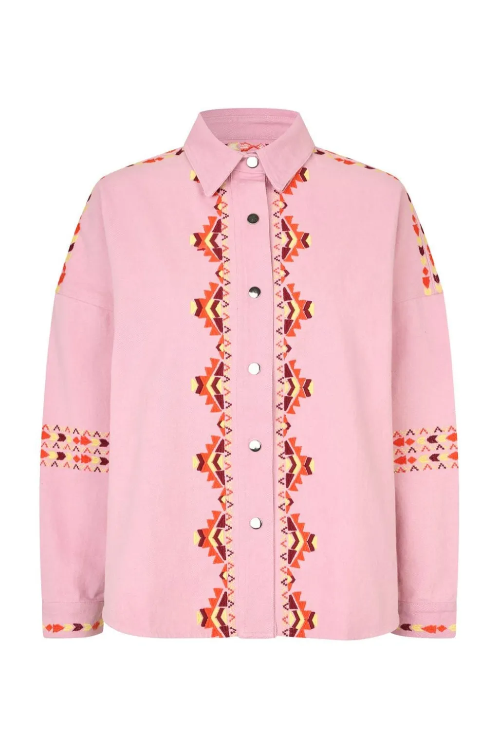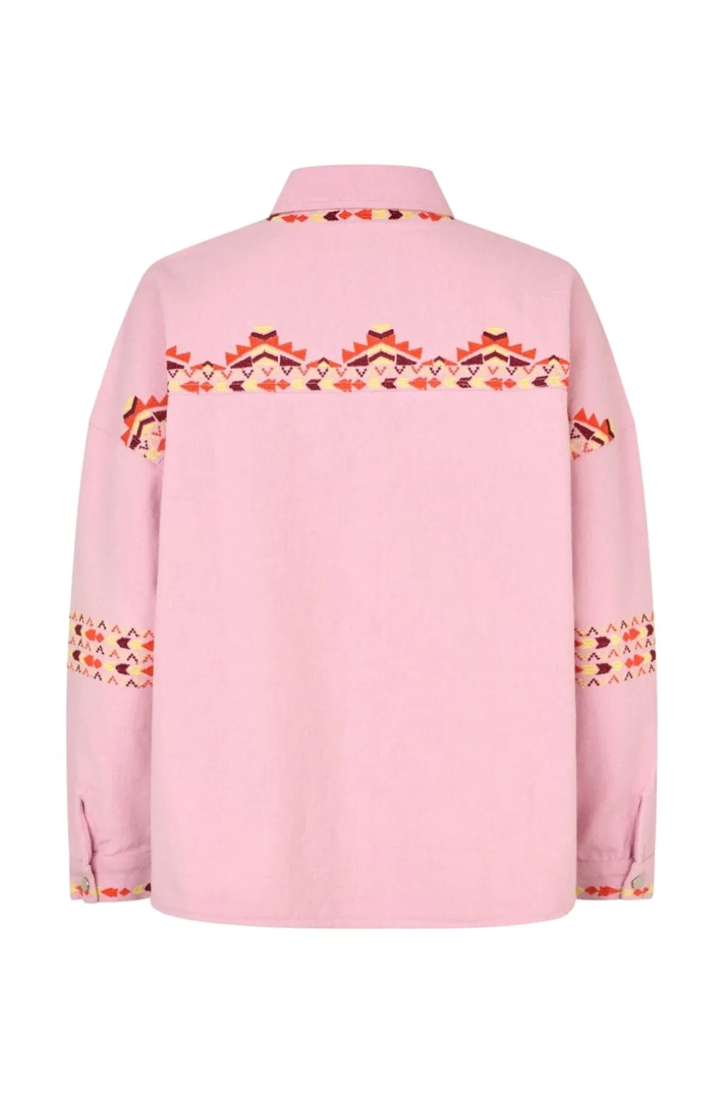 Lyserød overskjorte fra Lollys Laundry med broderede mønstre. Skjorten har skjortekrave, trykknapper og en løs pasform.