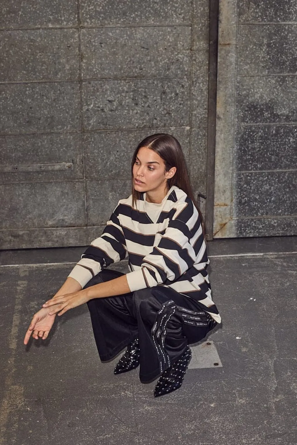 - Stribet mønster i sort og offwhite