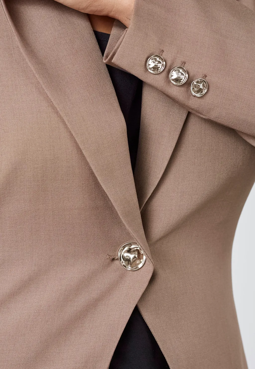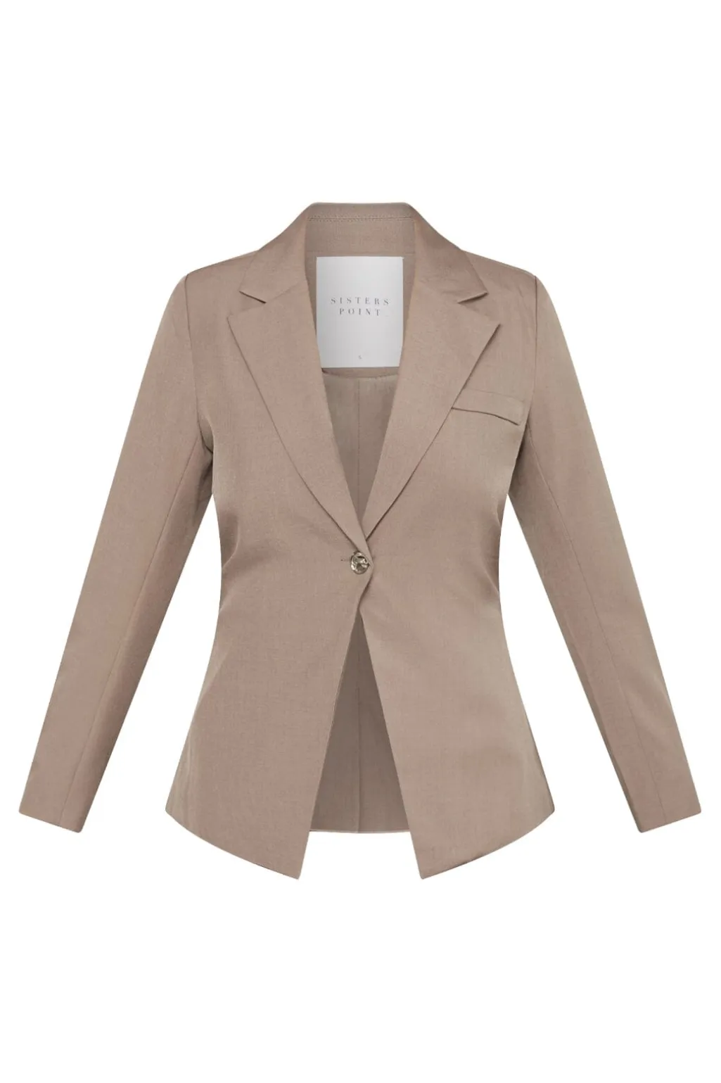 Beige blazer fra Sisters Point med skjortekrave og enkelt knaplukning. Blazeren har et figursyet snit og lange ærmer med dekorative knapper.