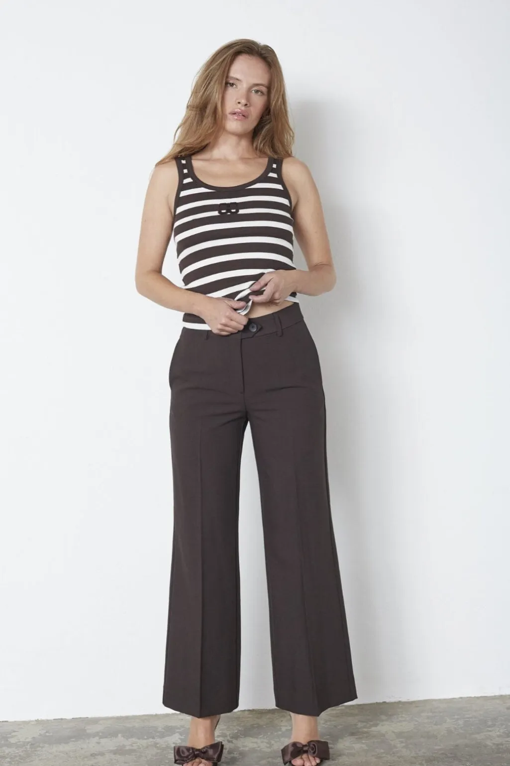 Mørkebrune viddebukser fra Co´Couture med høj talje og brede bukseben. Bukserne har en løs pasform og går ned til læggen.