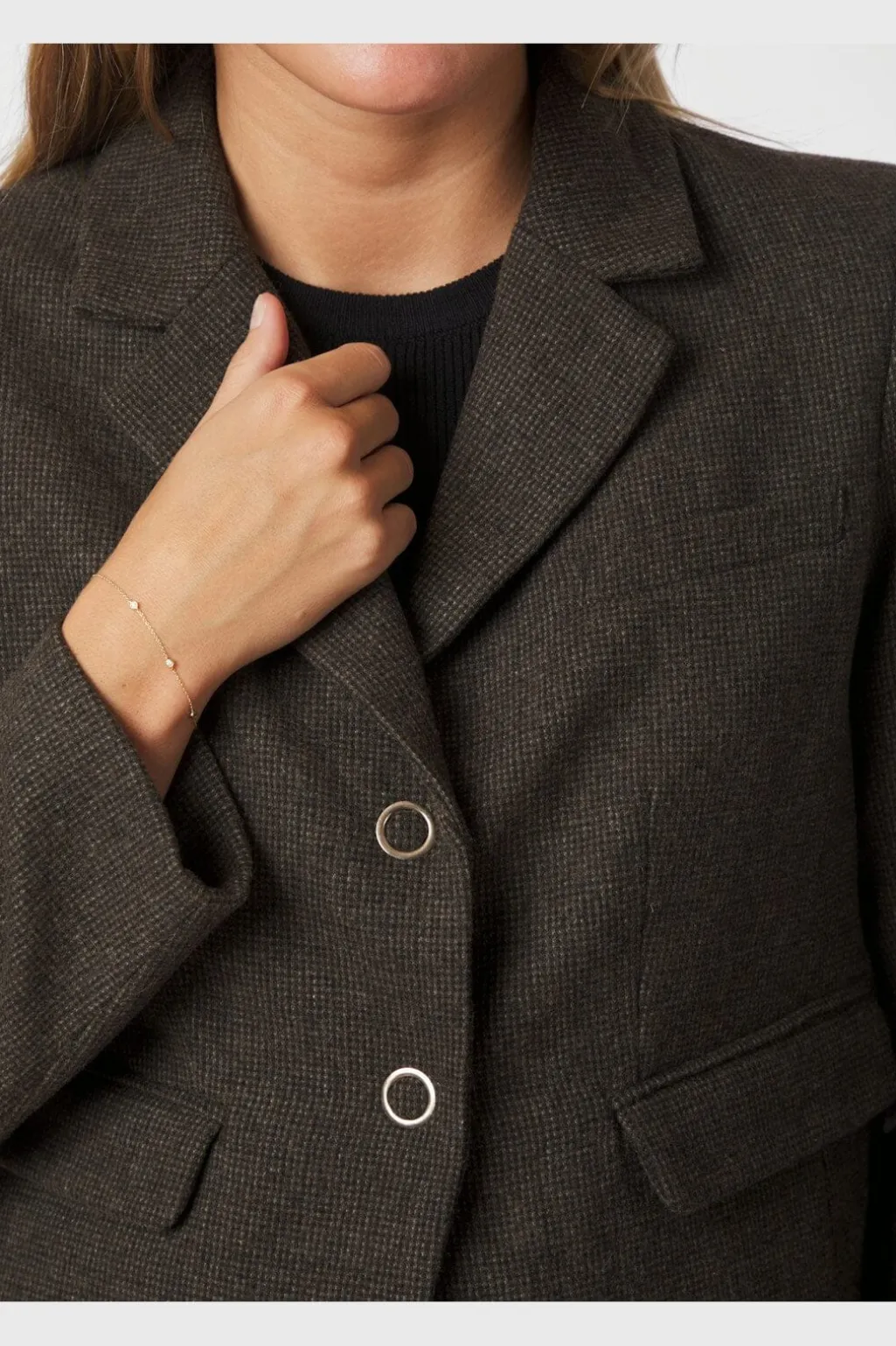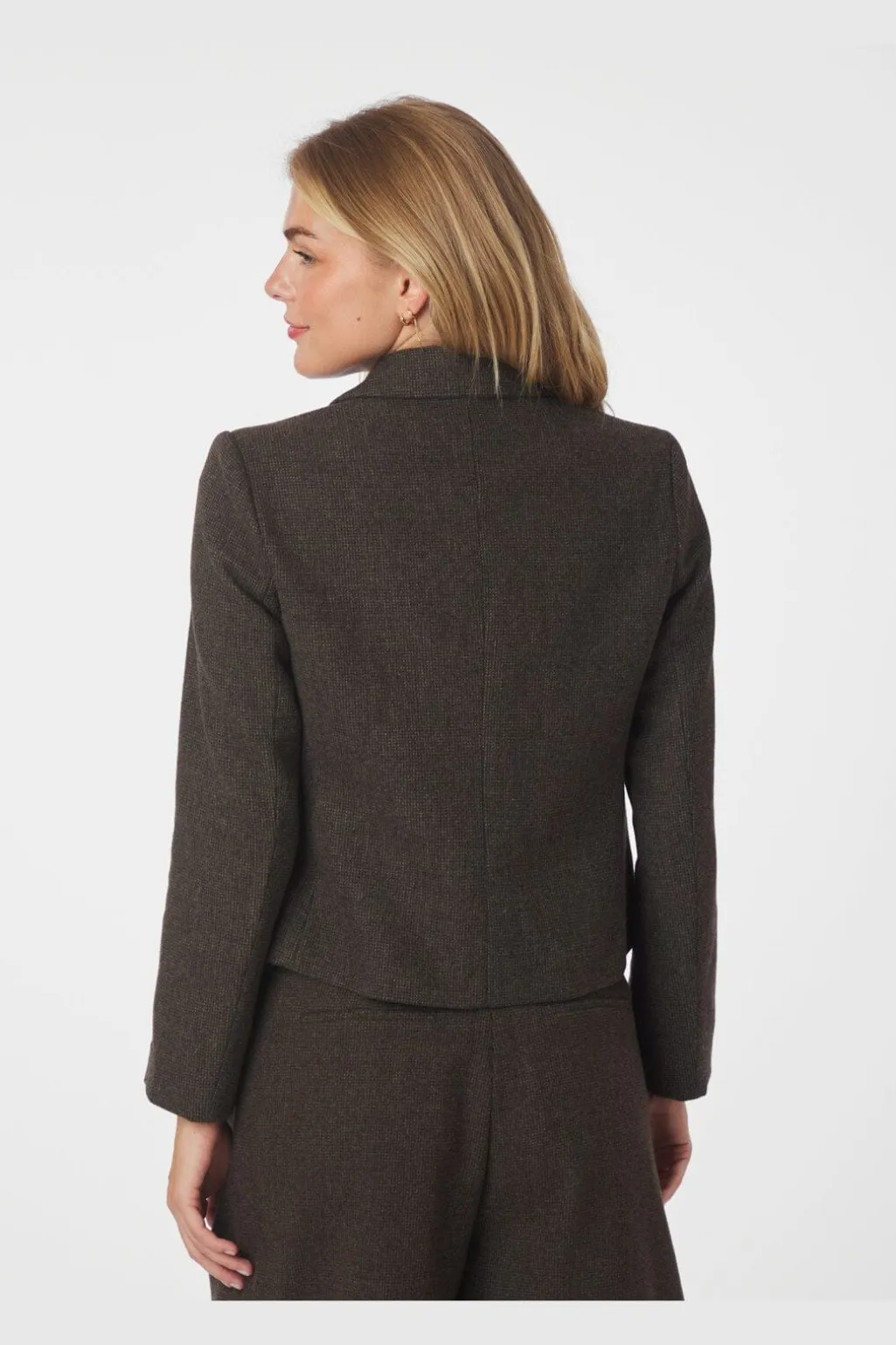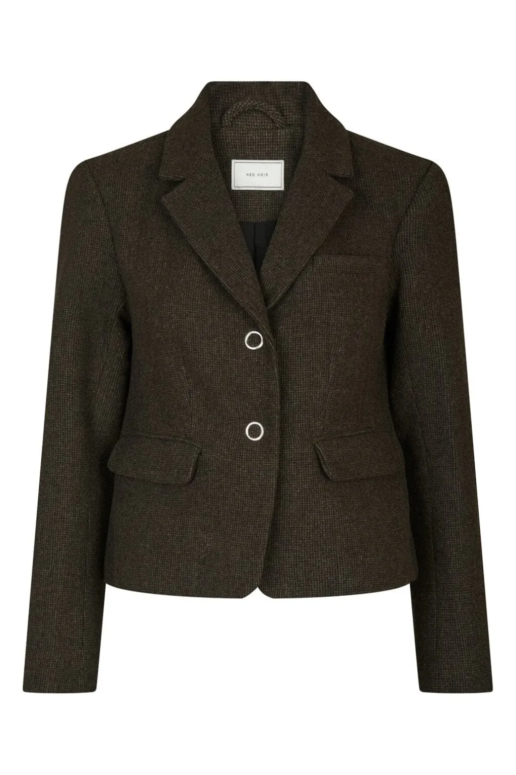 Brun blazer fra Neo Noir i ternet og meleret design. Blazeren har en slim fit-pasform med reverskrave og to knapper foran.