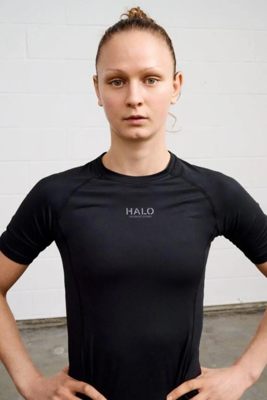 Sort T-shirt fra Halo, designet til aktivt brug. Materialet af polyester og elastan gør den fleksibel under træning og bevægelse.