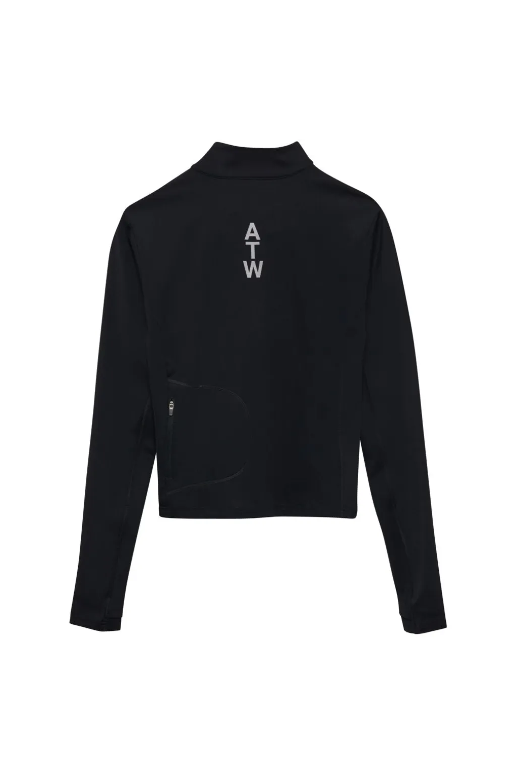 Sort trøje med lynlås fra HALO, fremstillet i fleksibelt polyamid med elastan. Trøjen har refleksprint med HALO-logoet foran og ATW-logoet bagpå.