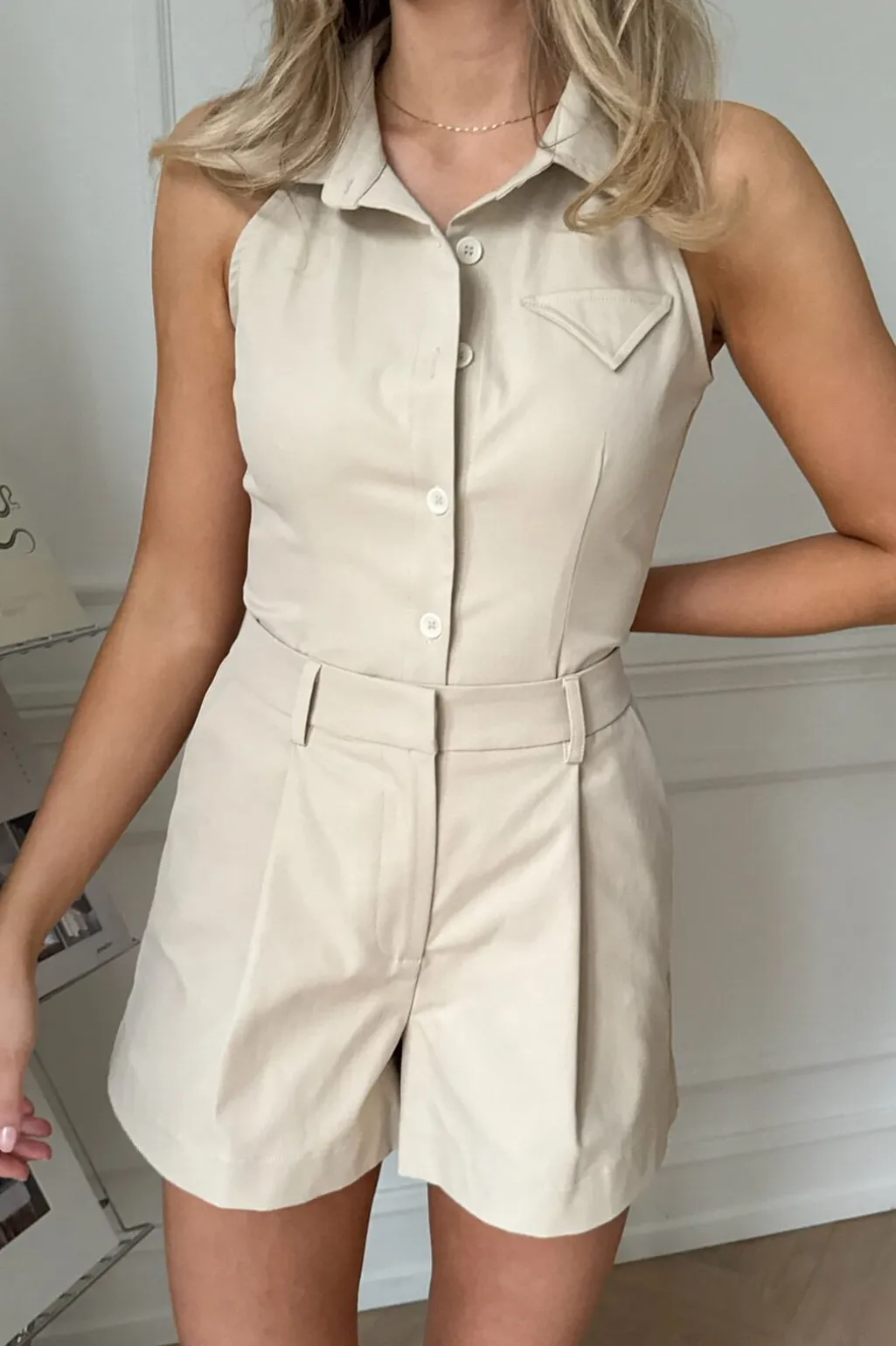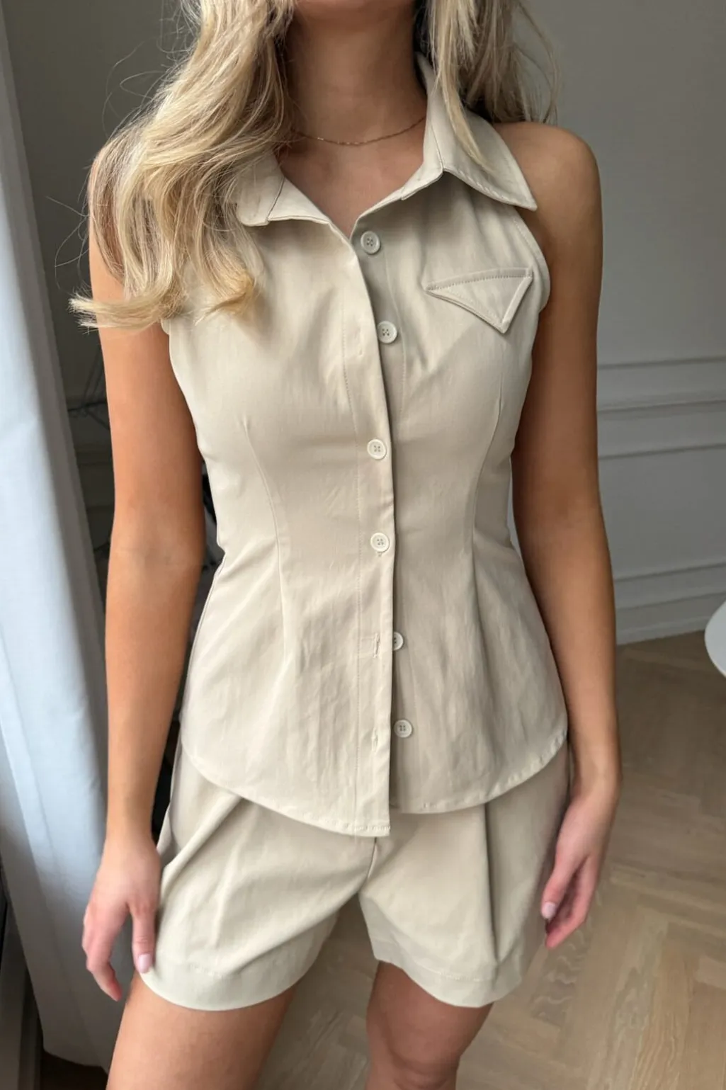 Beige shorts fra BYIC med en almindelig pasform. Shortsene har dekorative syninger og bindedetaljer, der giver et rent og enkelt udtryk.