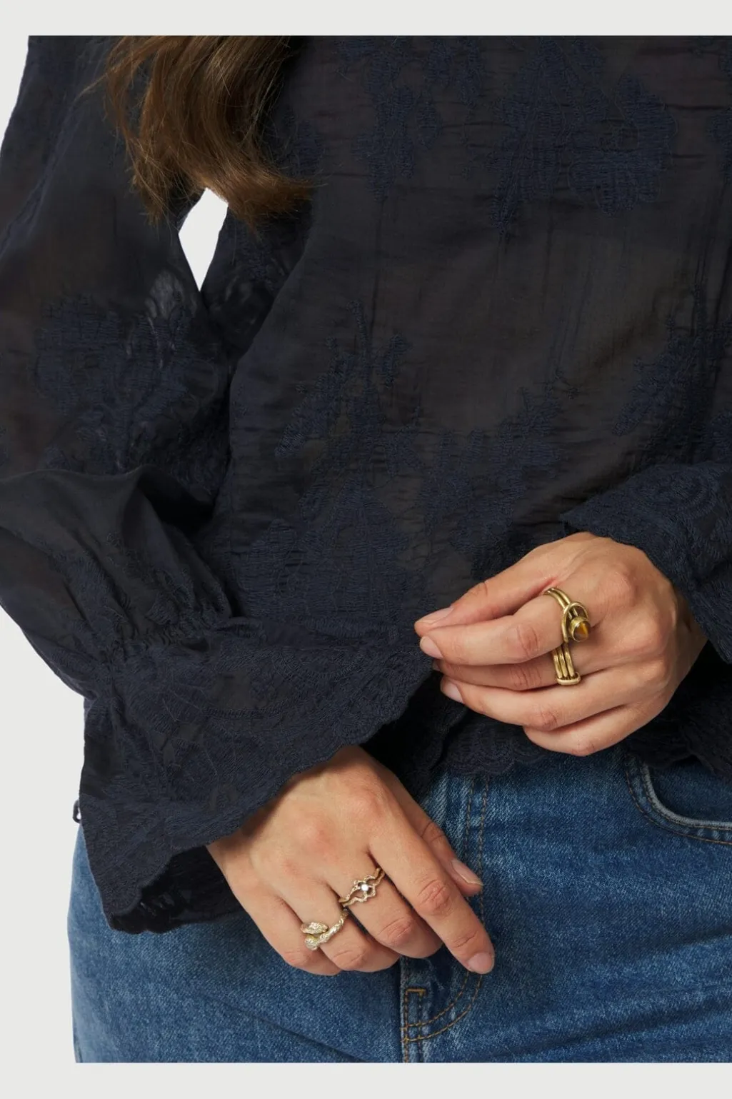 - Lange ærmer med flæsemanchetter