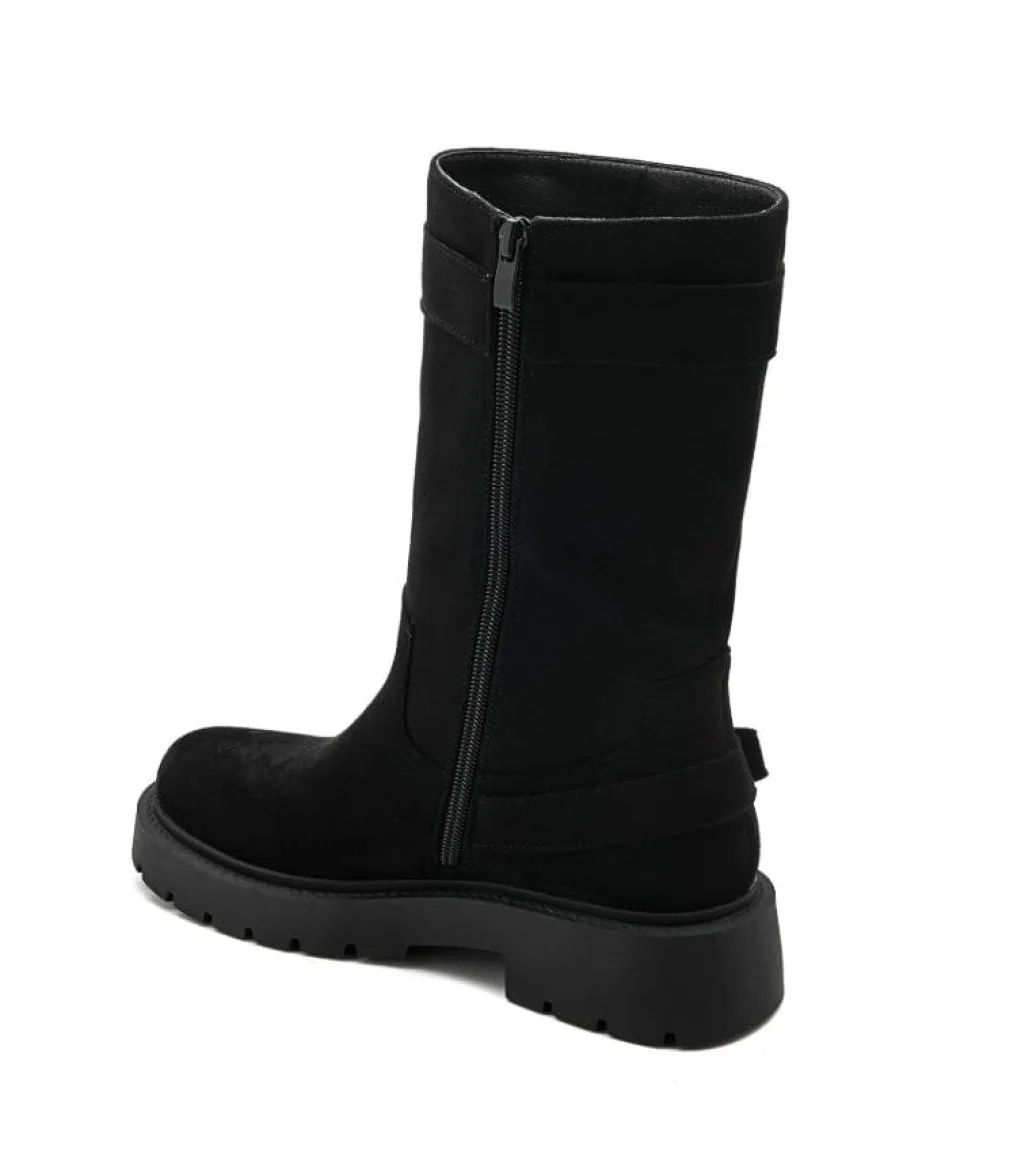 Sorte støvler fra Bloom i syntetisk materiale. Støvlerne har en blokhæl, rund tå og er velegnede til afslappede lejligheder.