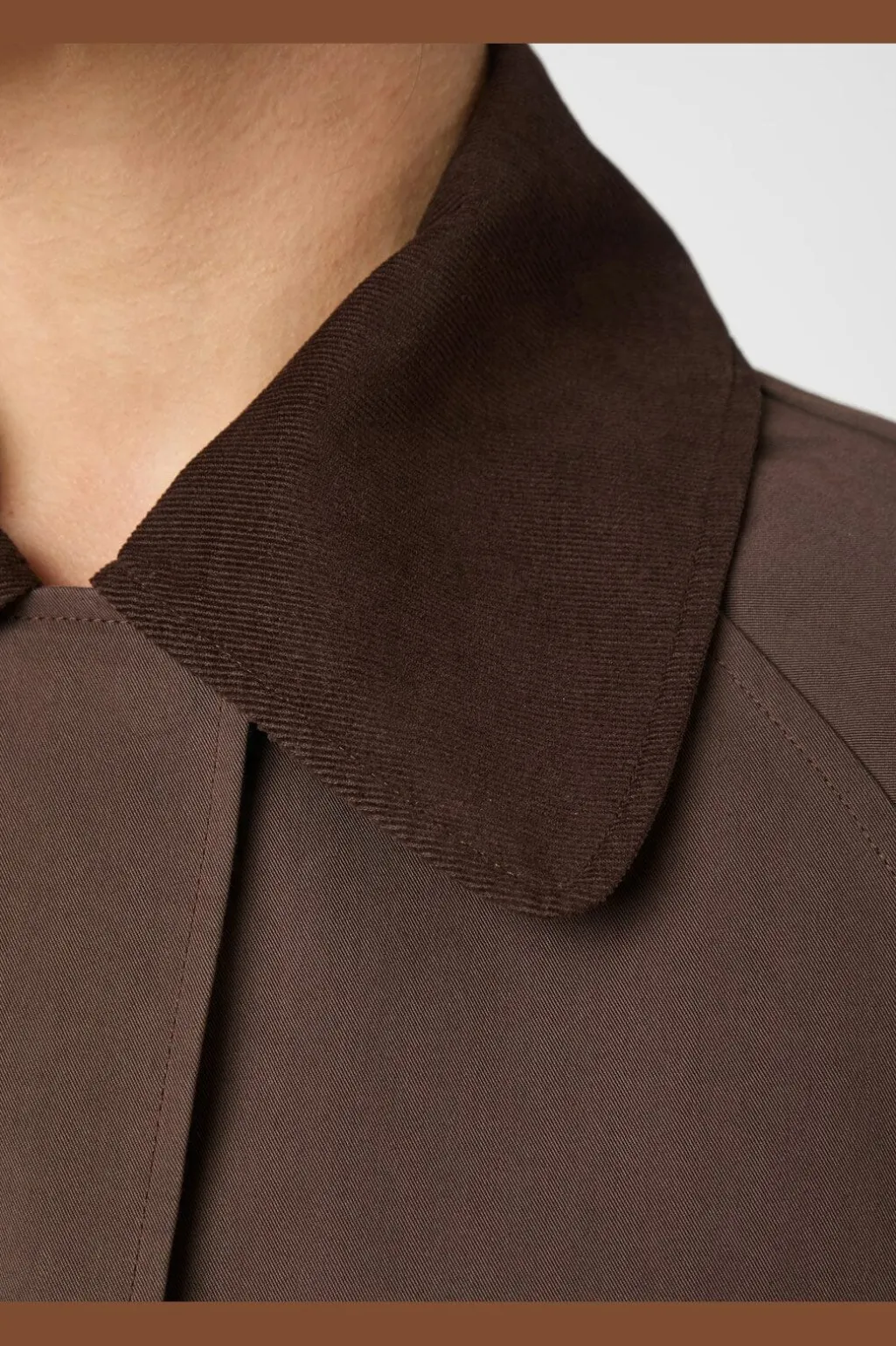 Brun fløjlsjakke fra Neo Noir med oversize pasform. Jakken har fløjlsdetaljer på kraven og ærmerne samt skjult lynlås foran.