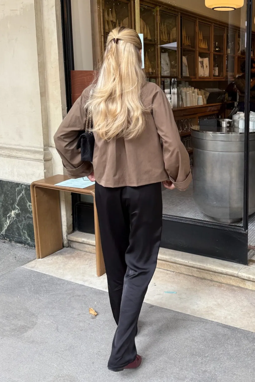 Kort trenchcoat fra BYIC i mørkebrun. Jakken har en løs pasform og er lavet af 100 % polyester med klassiske designdetaljer.