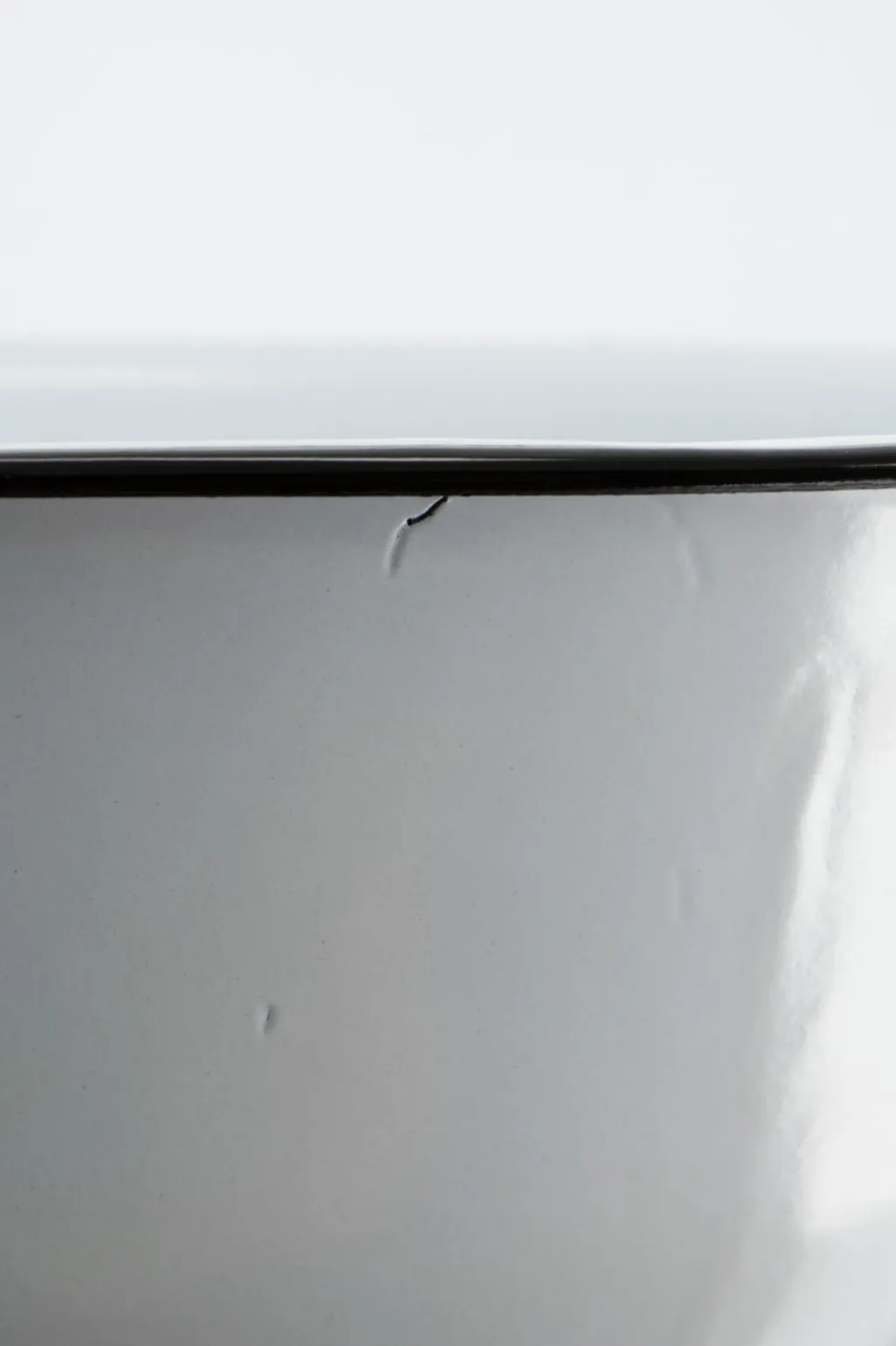 Slap helt af og nyd et dejligt fodbad i dette store og enkle fad fra Meraki. Størrelsen er også ideel til brug i køkkenet, når du skal vaske op. Med det simple og lidt nostalgiske design i hvid med mørk kant ledes tankerne hen på de gammeldags badeanstalter, og dit badeværelse får et strejf af velvære. Fadet hedder Large og fås også i en mindre version. Enhver variation og ufuldkommenhed i overfladen er del af baljens charme og en bevidst del af designet.