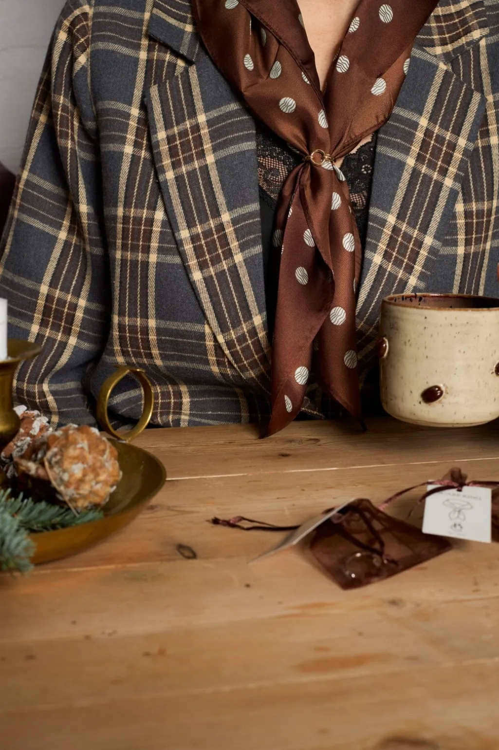 Guldfarvet tørklædering fra Black Colour med rund form og to åbninger. Den lille ring er lavet i en enkel og praktisk udformning til at holde tørklæderne samlet.