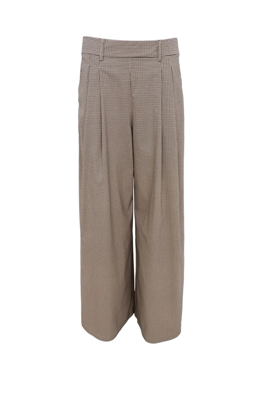 Vidbenede bukser fra Black Colour i brun med et lille ternet mønster. Bukserne har en høj talje og en løs pasform.