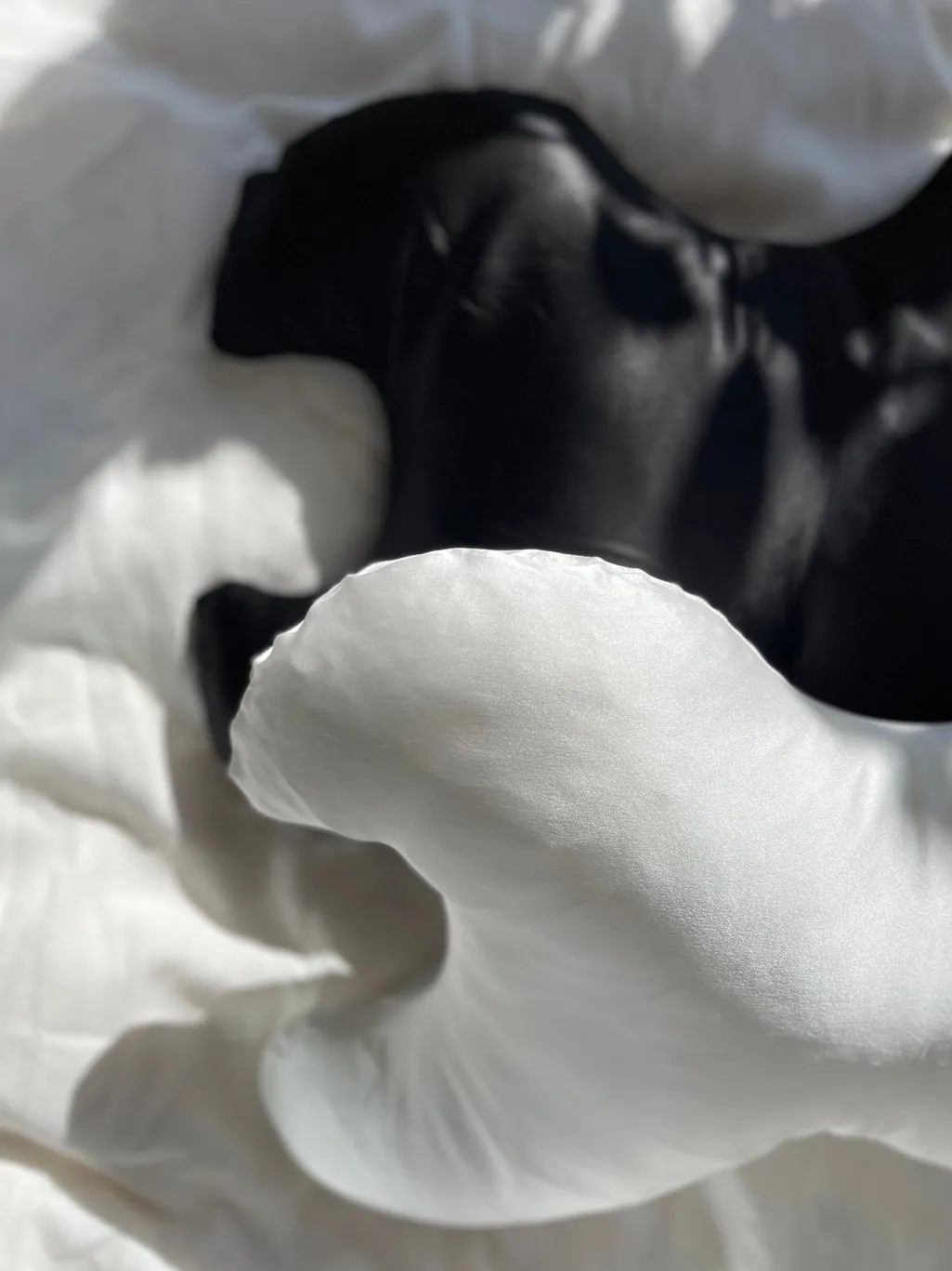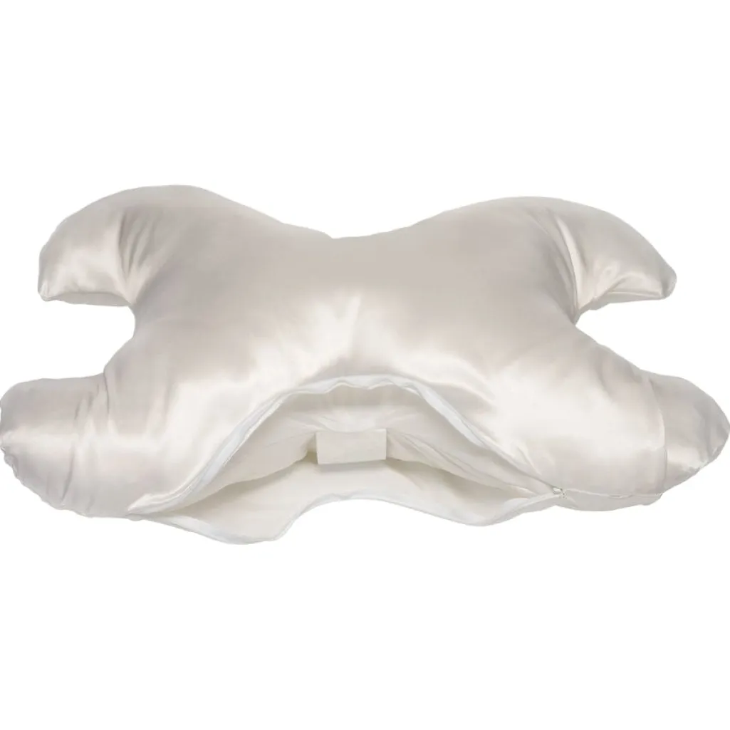 Hvidt pudebetræk fra Save My Face i charmeuse-silke med temperaturregulerende og antiseptiske egenskaber. Betrækket er designet specifikt til Le Grand-puden.