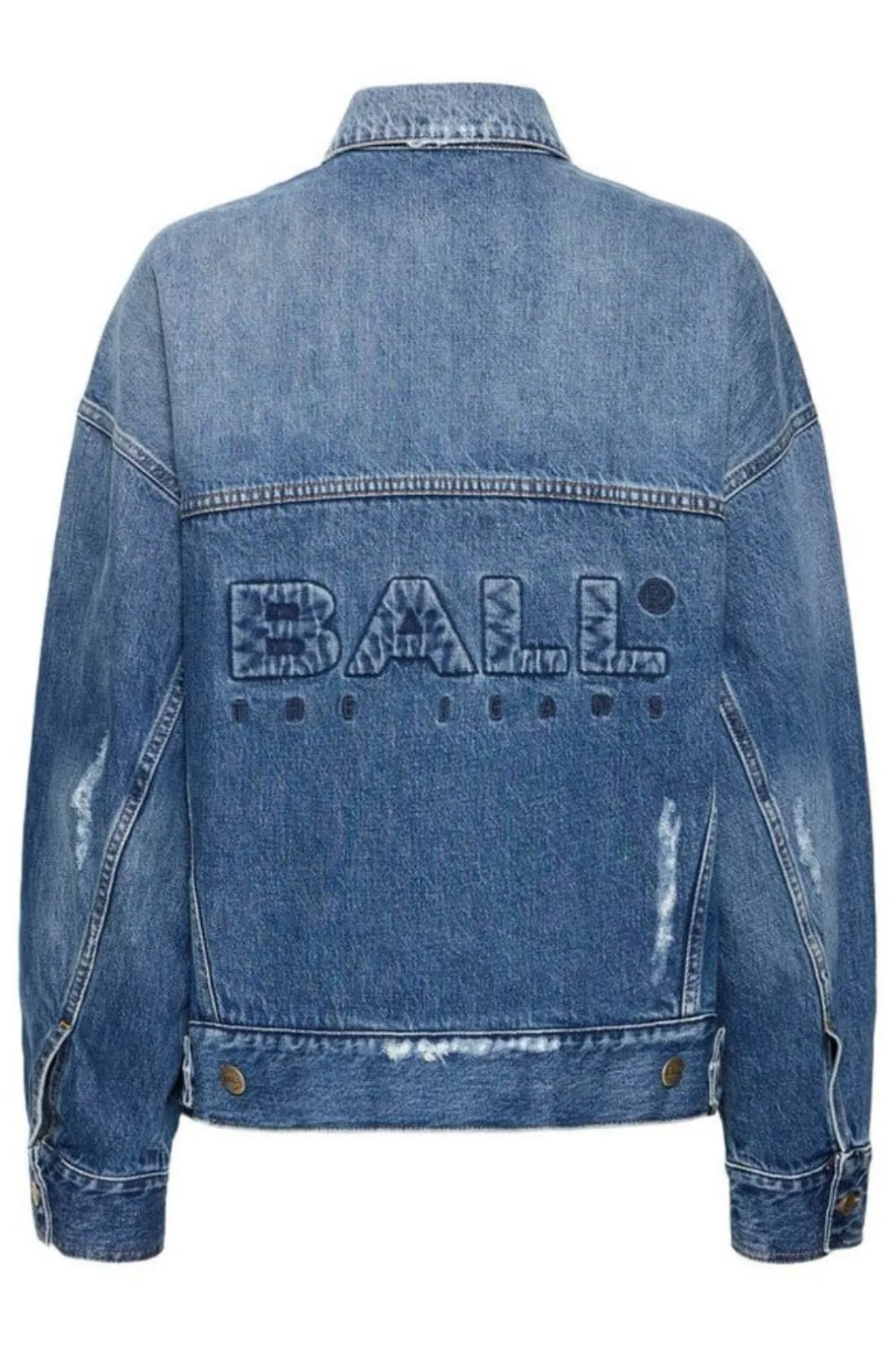 Denimjakke fra Ball i mellemblå vask. Jakken har dekorative syninger og broderi samt en klassisk skjortekrave.