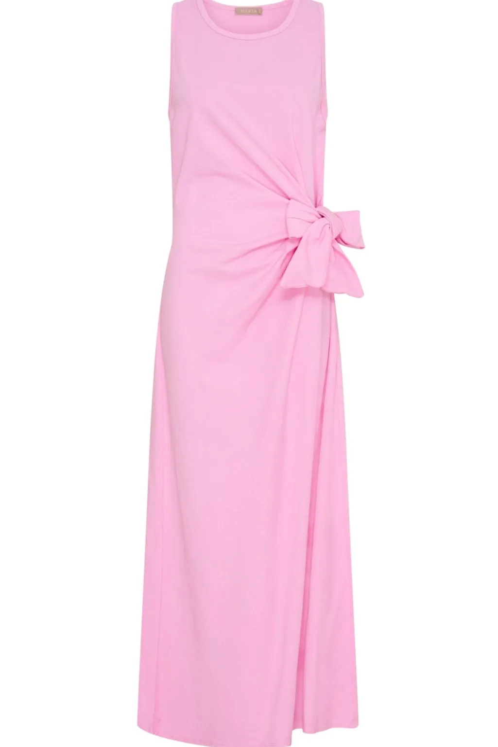 Lang kjole fra Marta Du Chateau i rosa. Kjolen har en løs pasform med en knudedetalje i siden og brede stropper med rund halsudskæring.